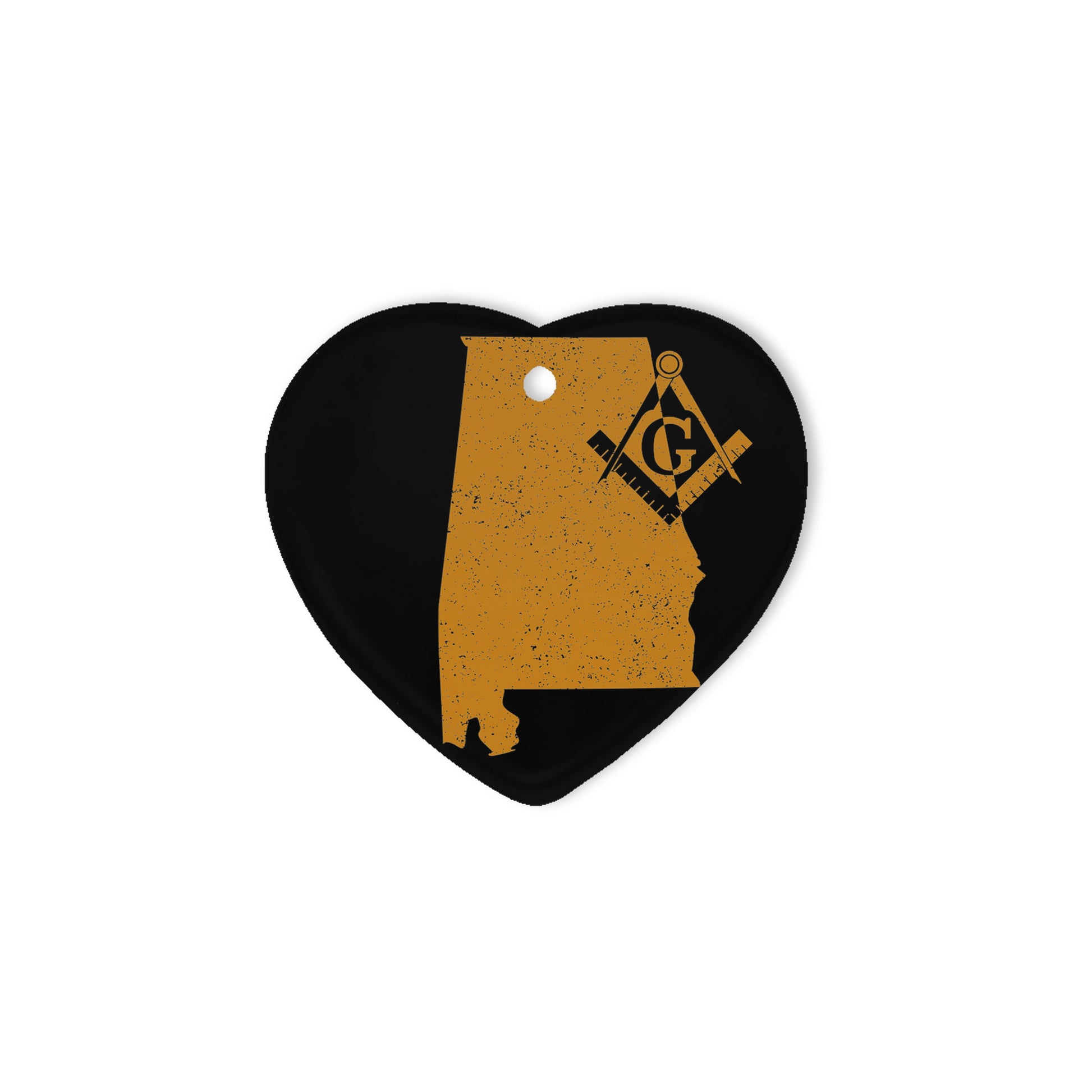Alabama square & compass freemason symbol state map - Heart Ceramic Ornament (2 sided)