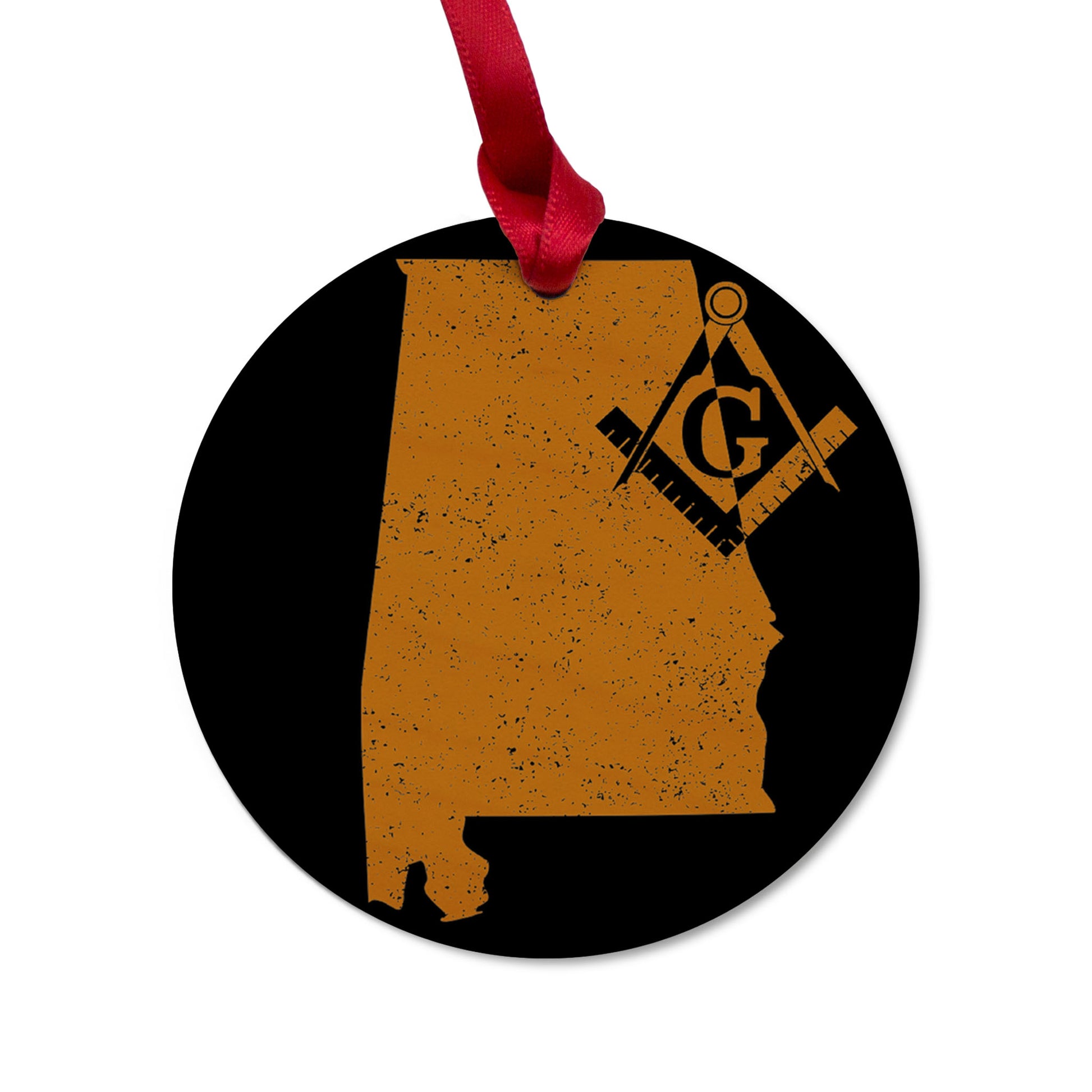 Alabama square & compass freemason symbol state map - Round Wooden Maple Ornament