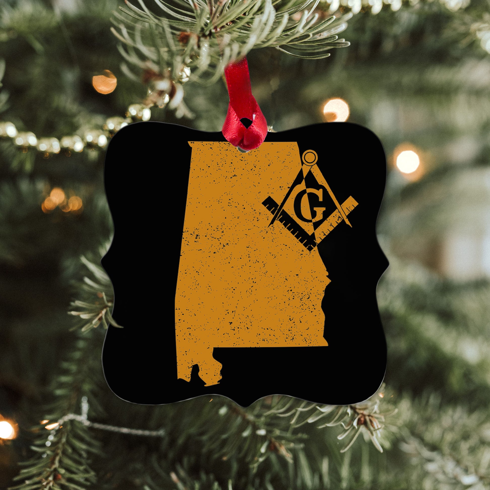 Alabama square & compass freemason symbol state map - Square Aluminum Ornament