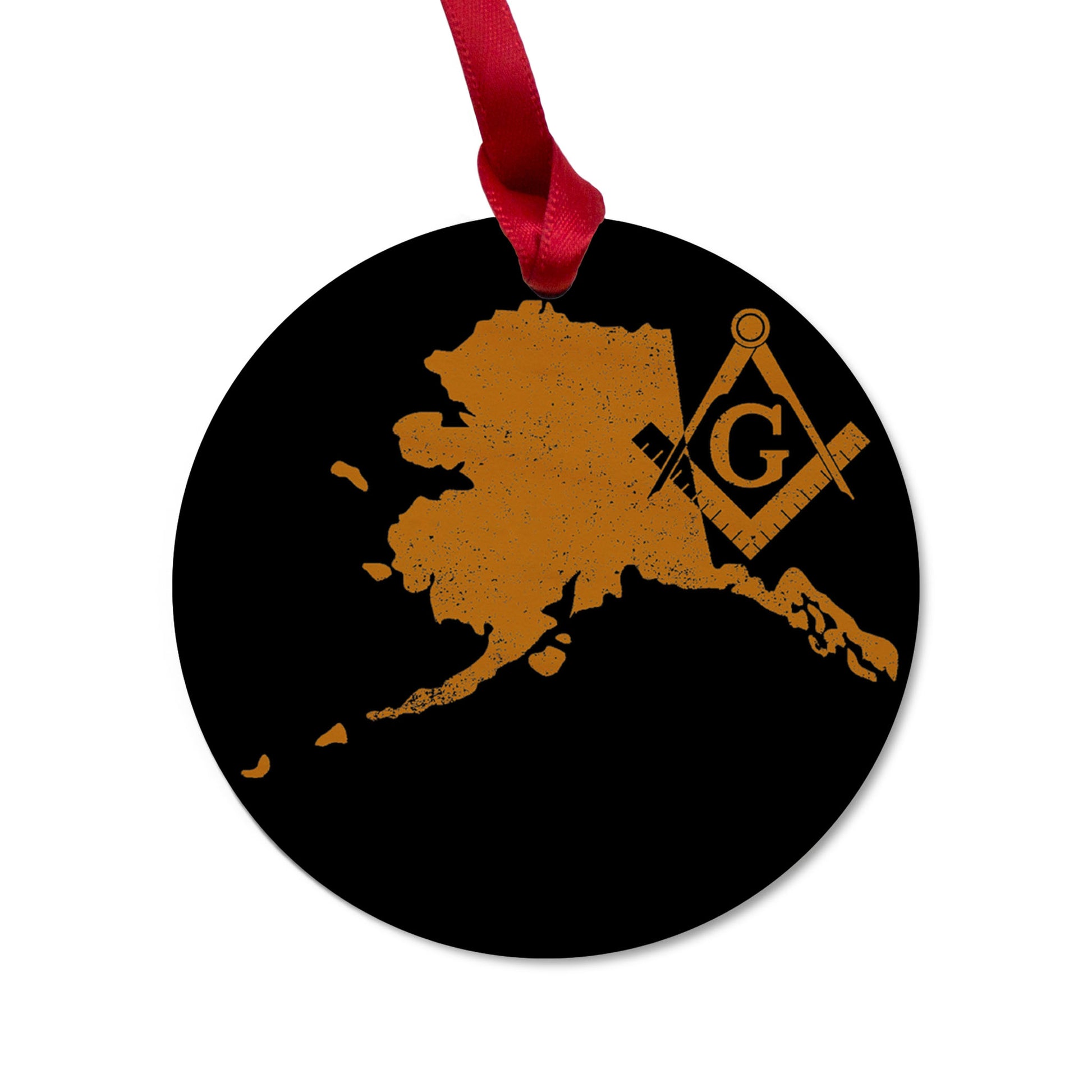 Alaska square & compass freemason symbol state map - Round Wooden Maple Ornament
