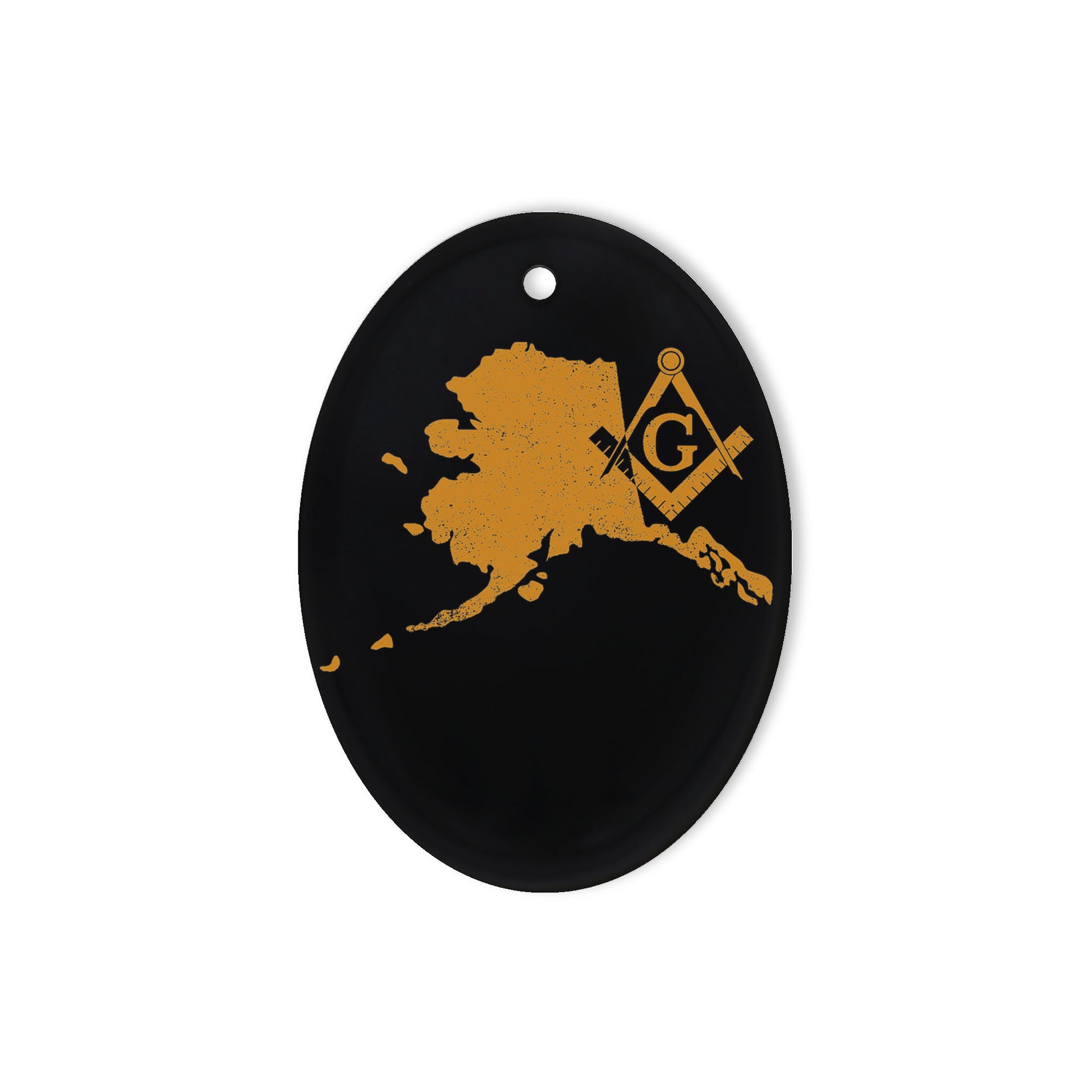 Alaska square & compass freemason symbol state map - Oval Ceramic Ornament (2 sided)