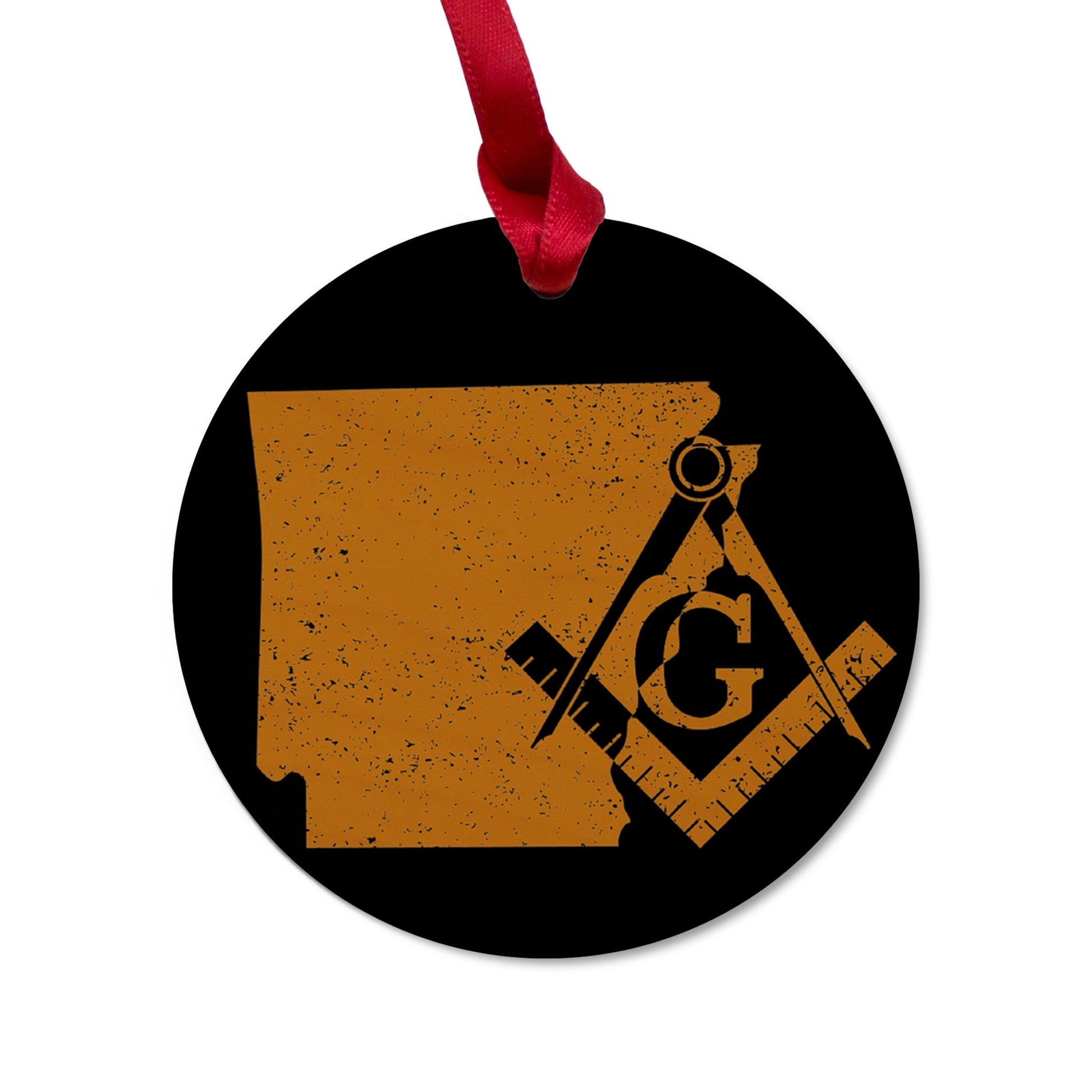 Arkansas square & compass freemason symbol state map - Round Wooden Maple Ornament
