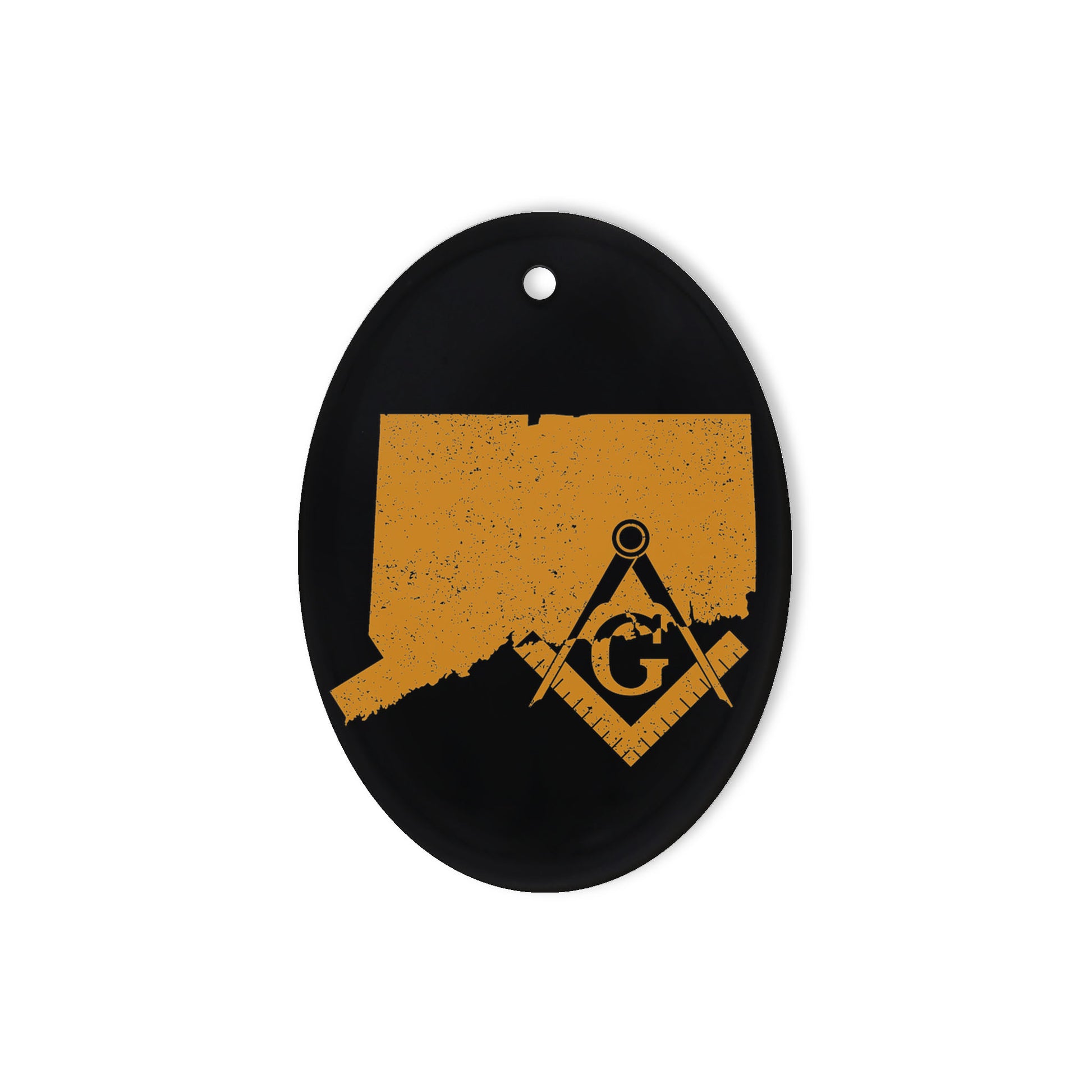 Connecticut square & compass freemason symbol state map - Oval Ceramic Ornament
