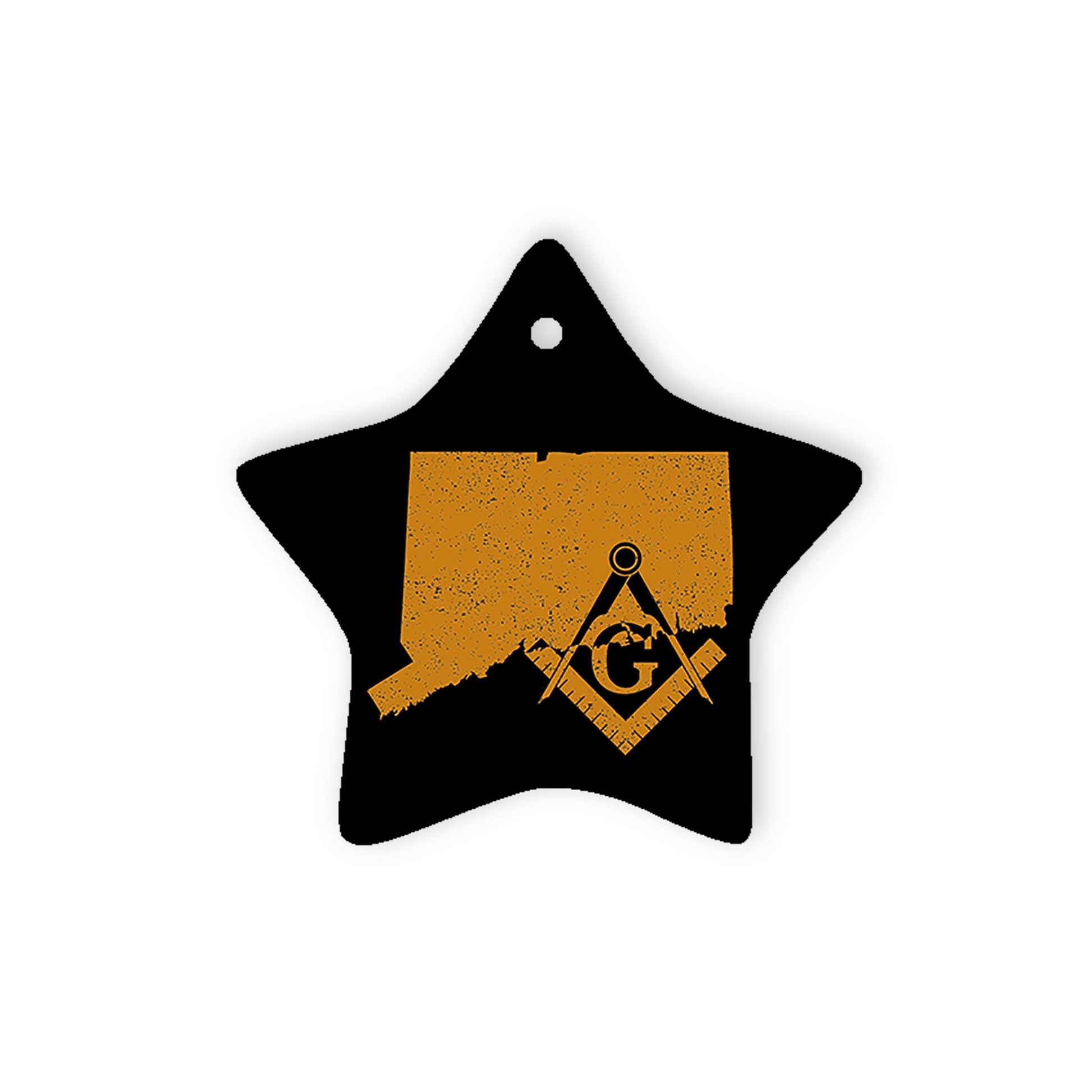 Connecticut square & compass freemason symbol state map - Star Ceramic Ornament (2 sided)