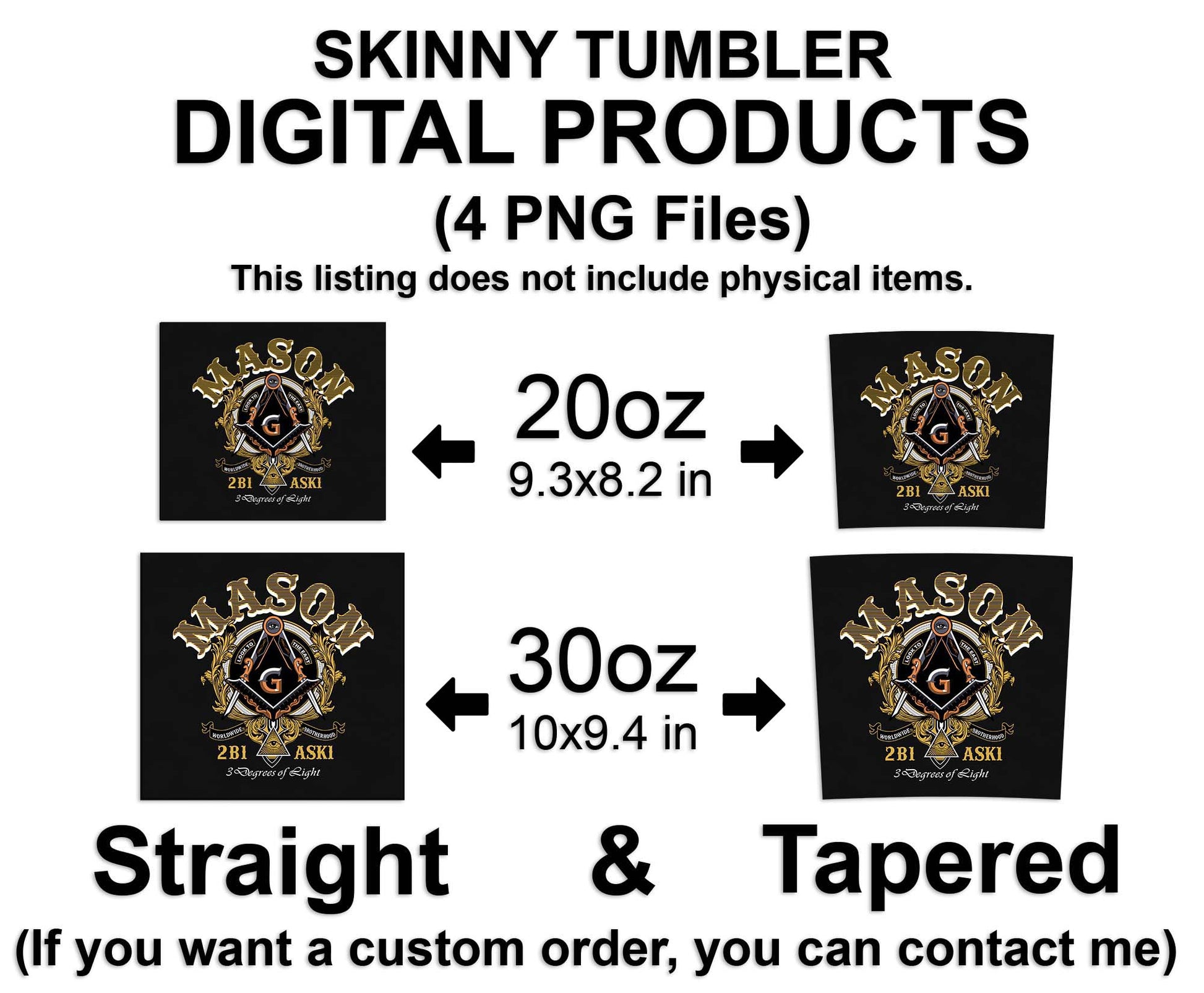 This listing is for an instant downloadable file designed to be used on 20oz & 30oz skinny tumblers.