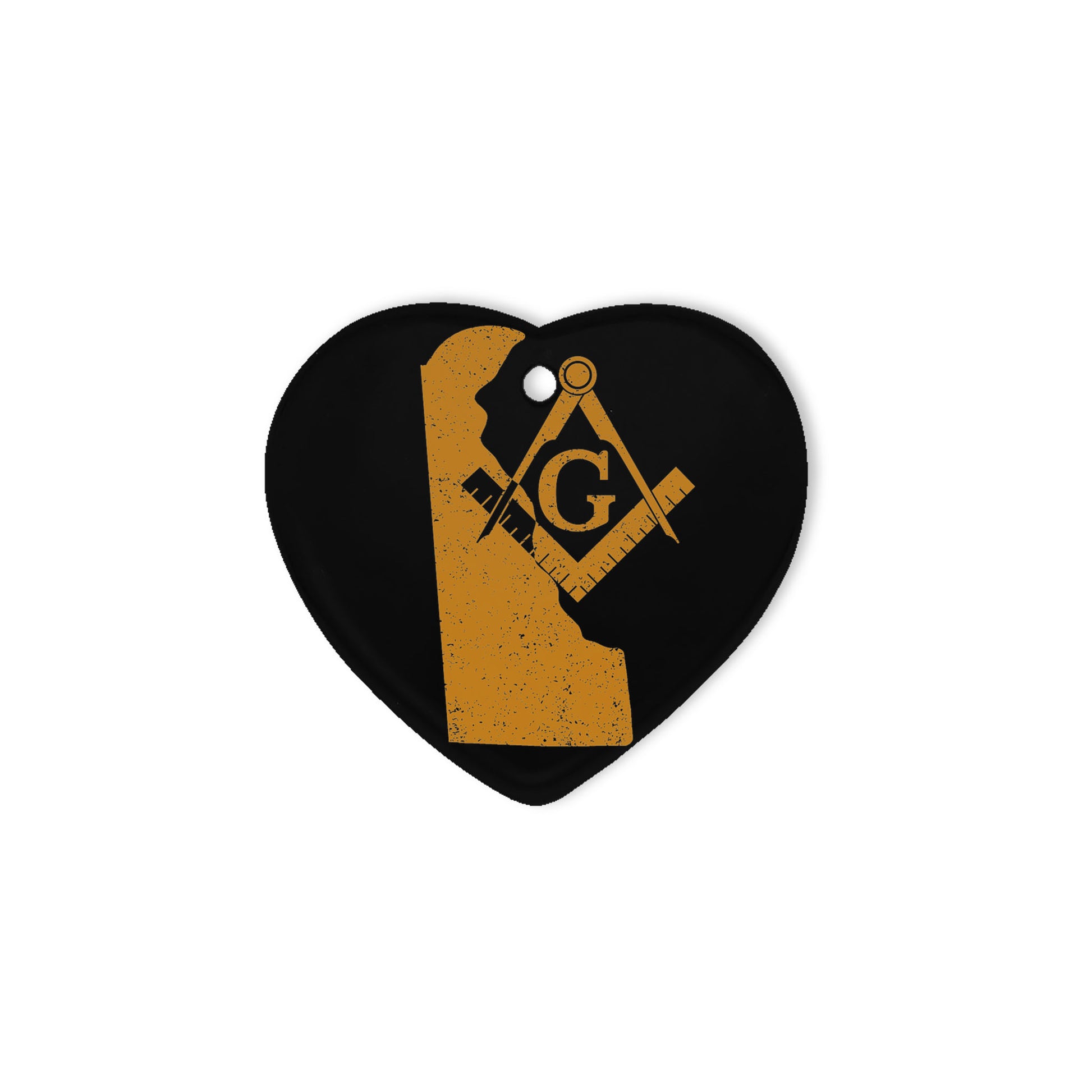 Delaware square & compass freemason symbol state map - Heart Ceramic Ornament (2 sided)