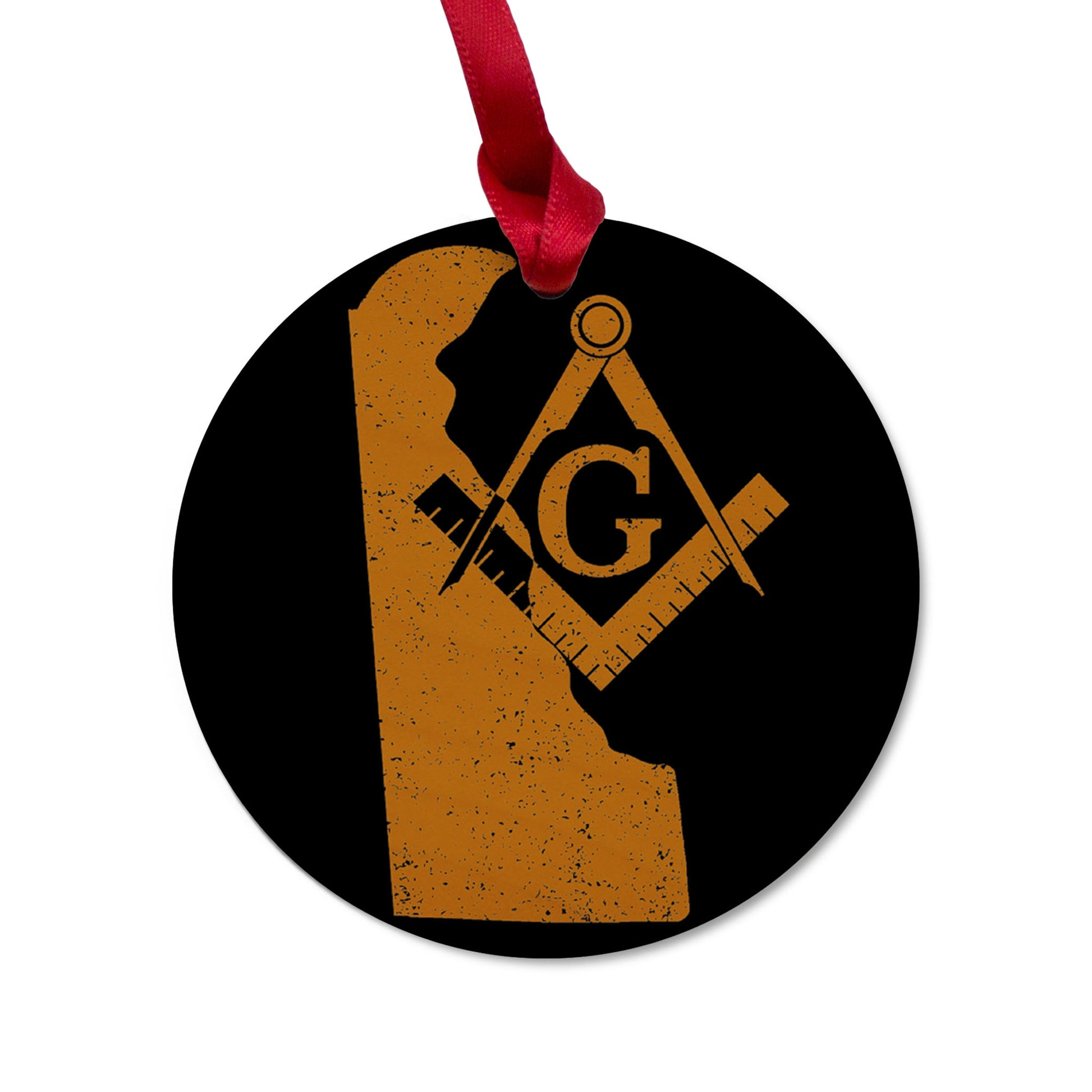 Delaware square & compass freemason symbol state map - Round Wooden Maple Ornament