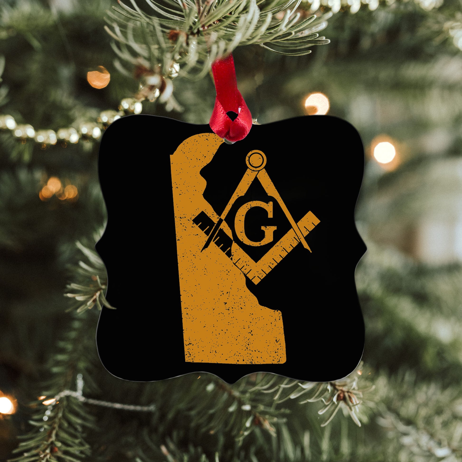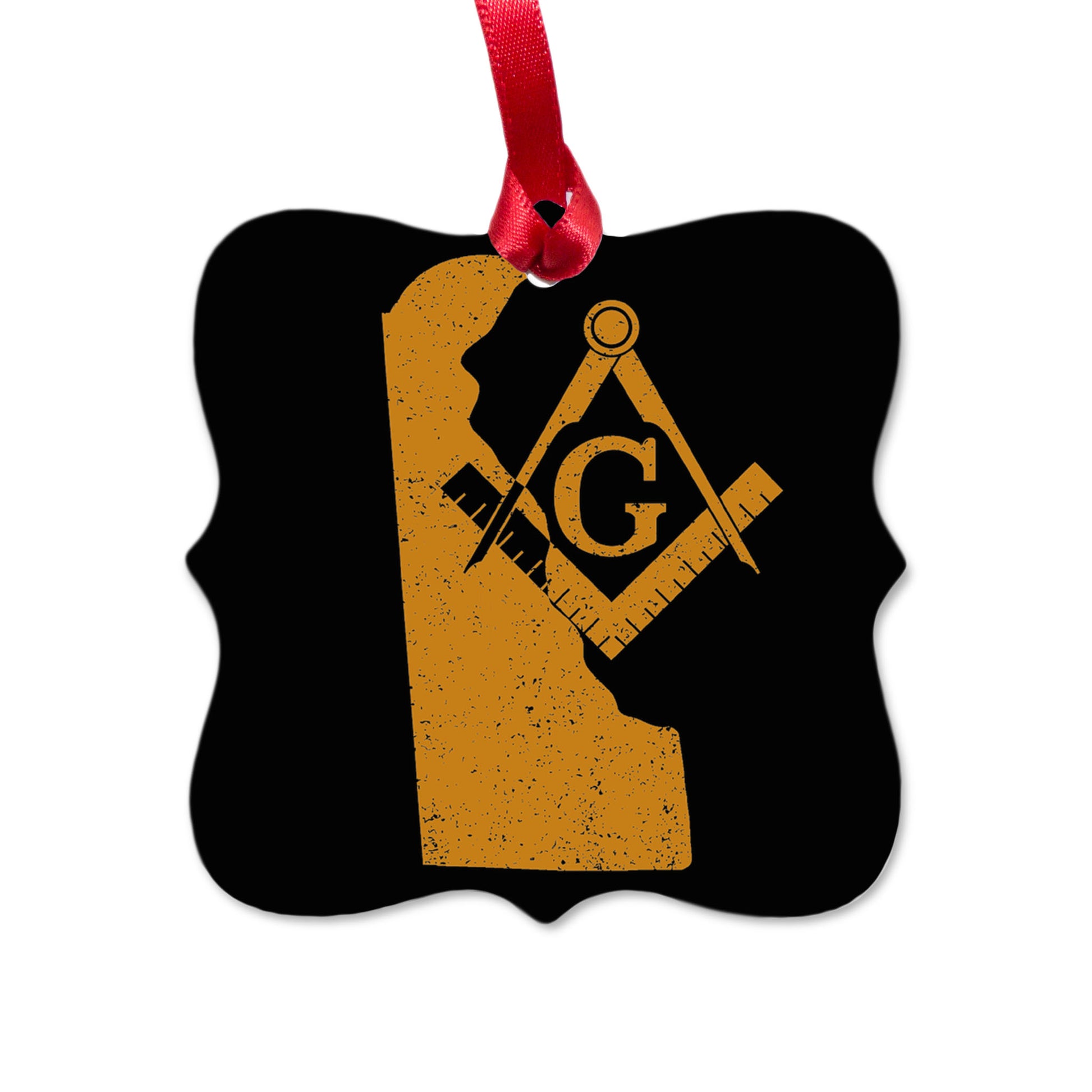 Delaware square & compass freemason symbol state map - Square Aluminum Ornament