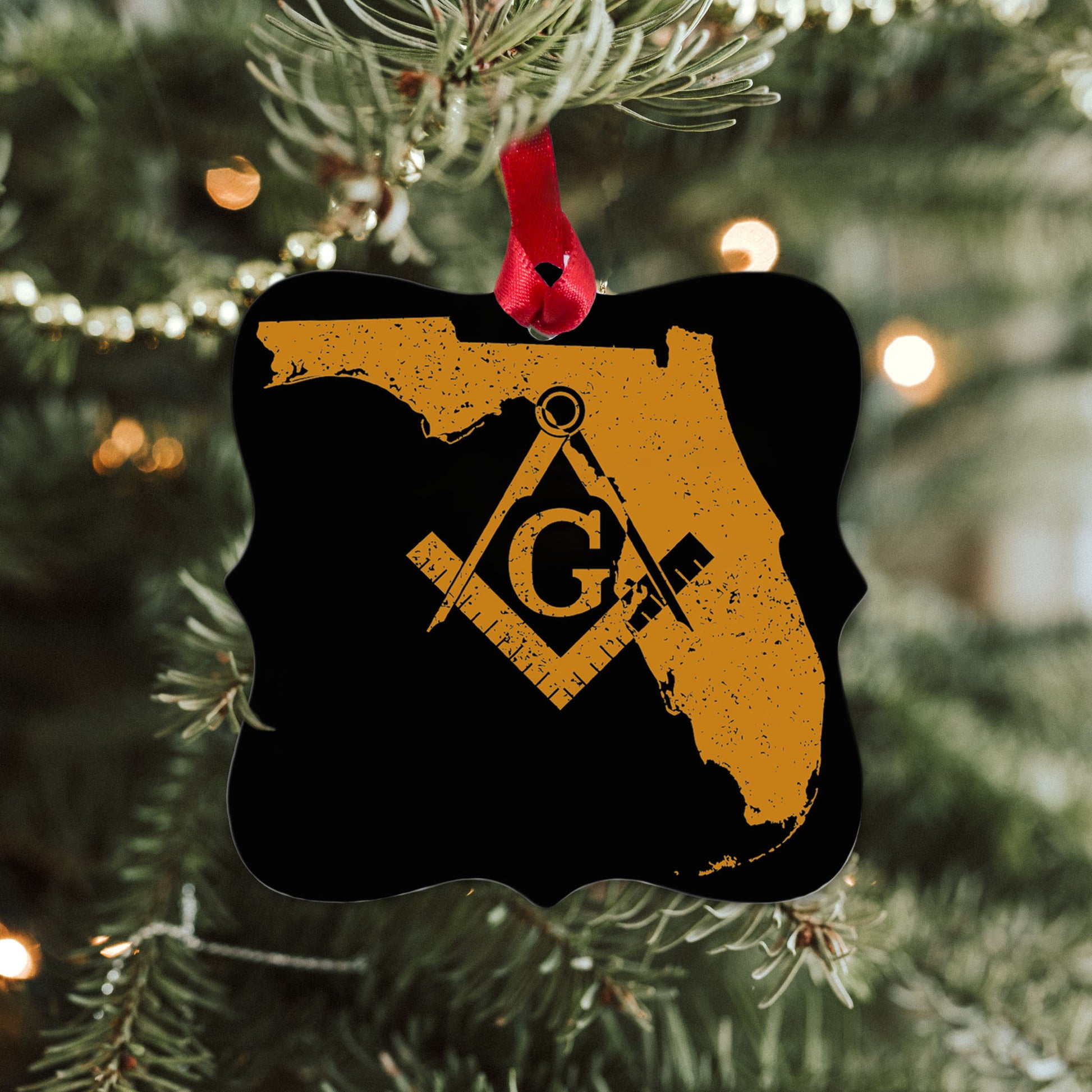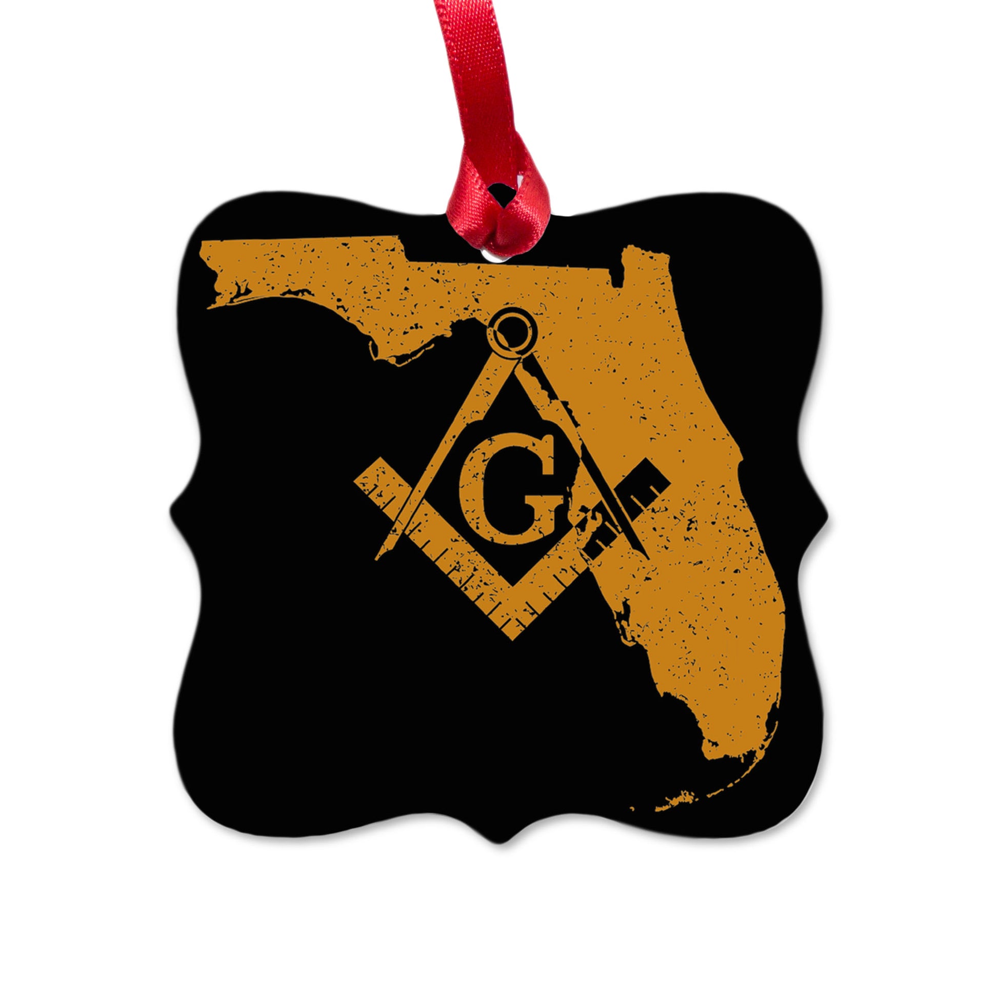 Florida square & compass freemason symbol state map - Square Aluminum Ornament