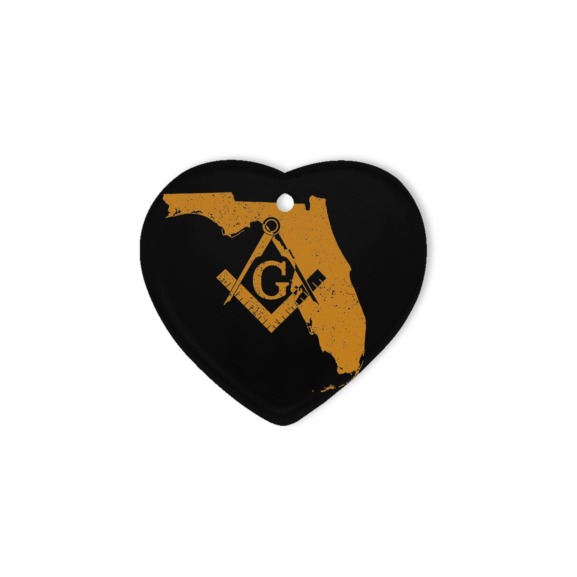 Florida square & compass freemason symbol state map - Heart Ceramic Ornament (2 sided)