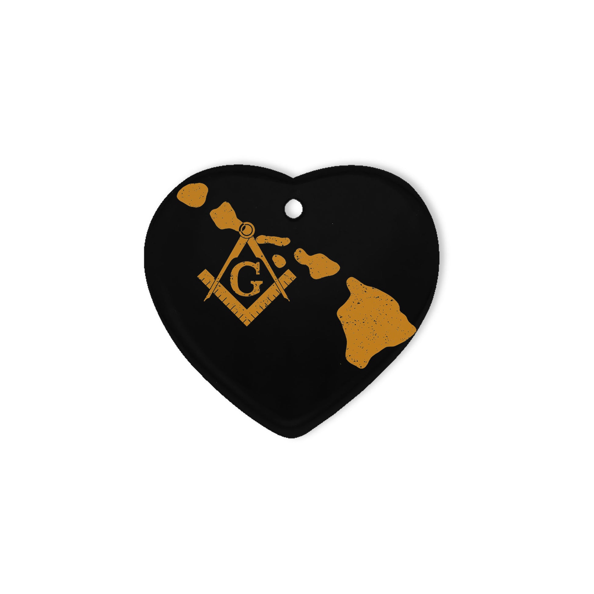 Hawaii square & compass freemason symbol state map - Heart Ceramic Ornament (2 sided)