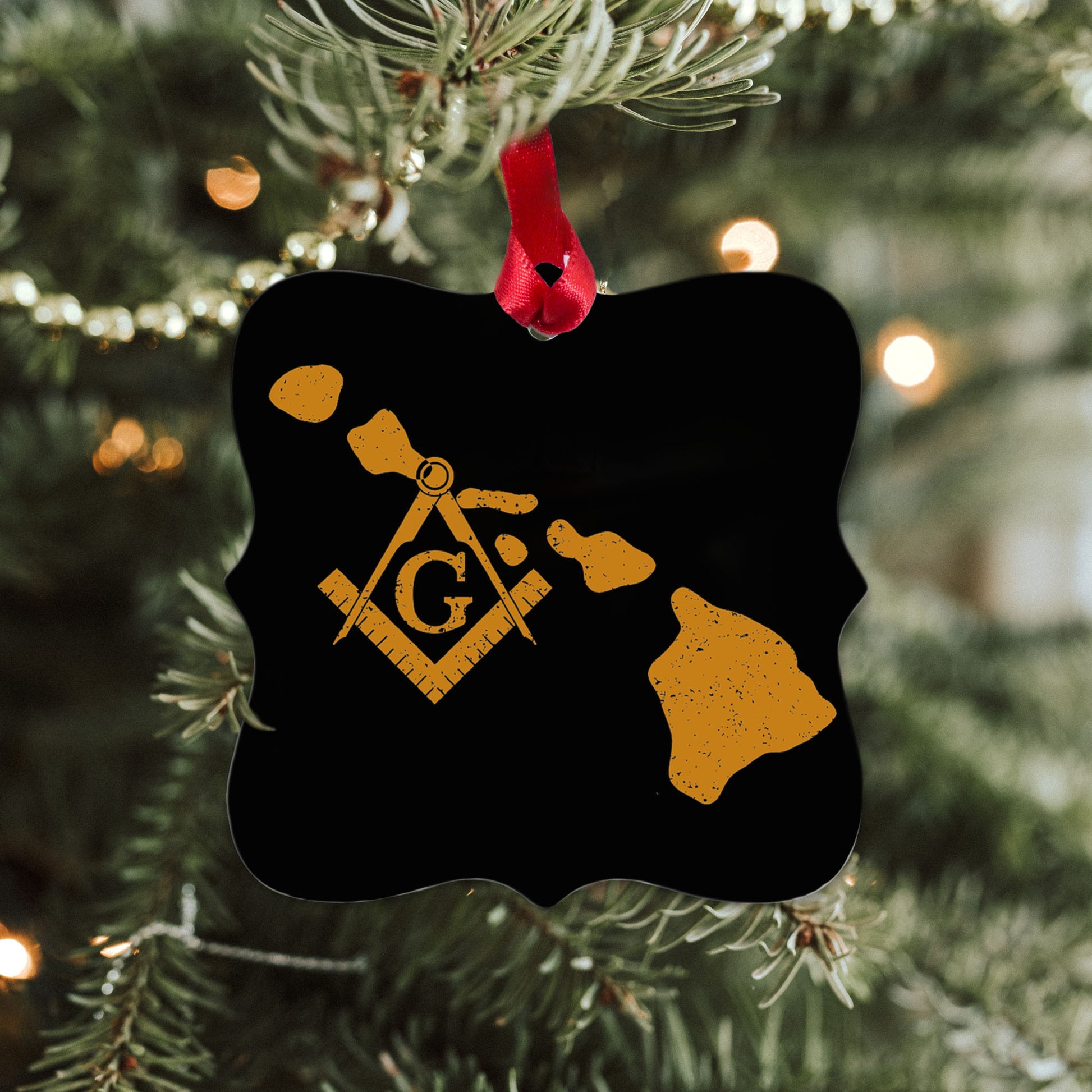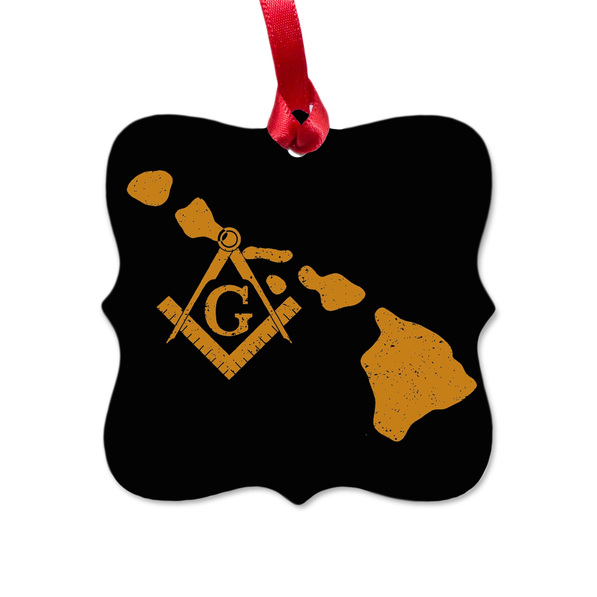 Hawaii square & compass freemason symbol state map - Square Aluminum Ornament
