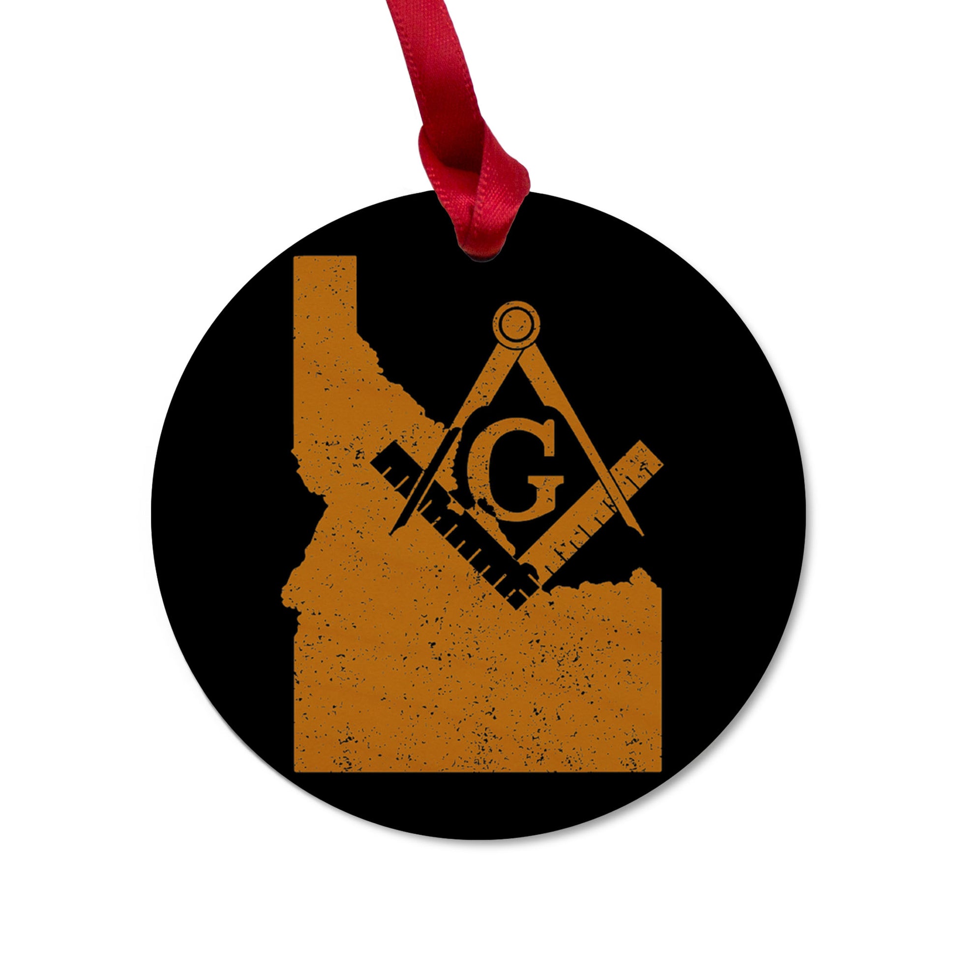 Idaho square & compass freemason symbol state map - Round Wooden Maple Ornament