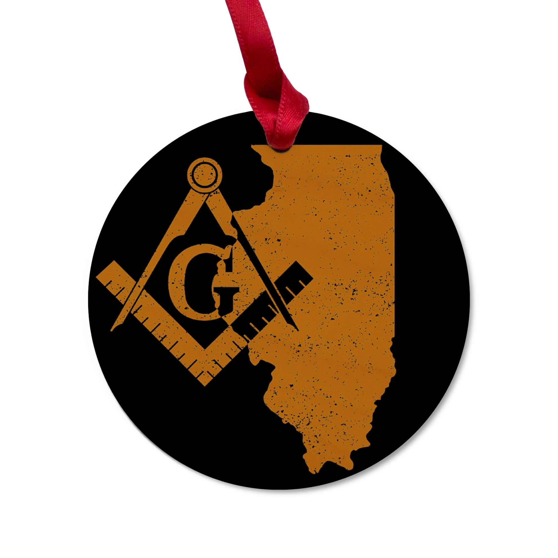 Illinois square & compass freemason symbol state map - Round Wooden Maple Ornament