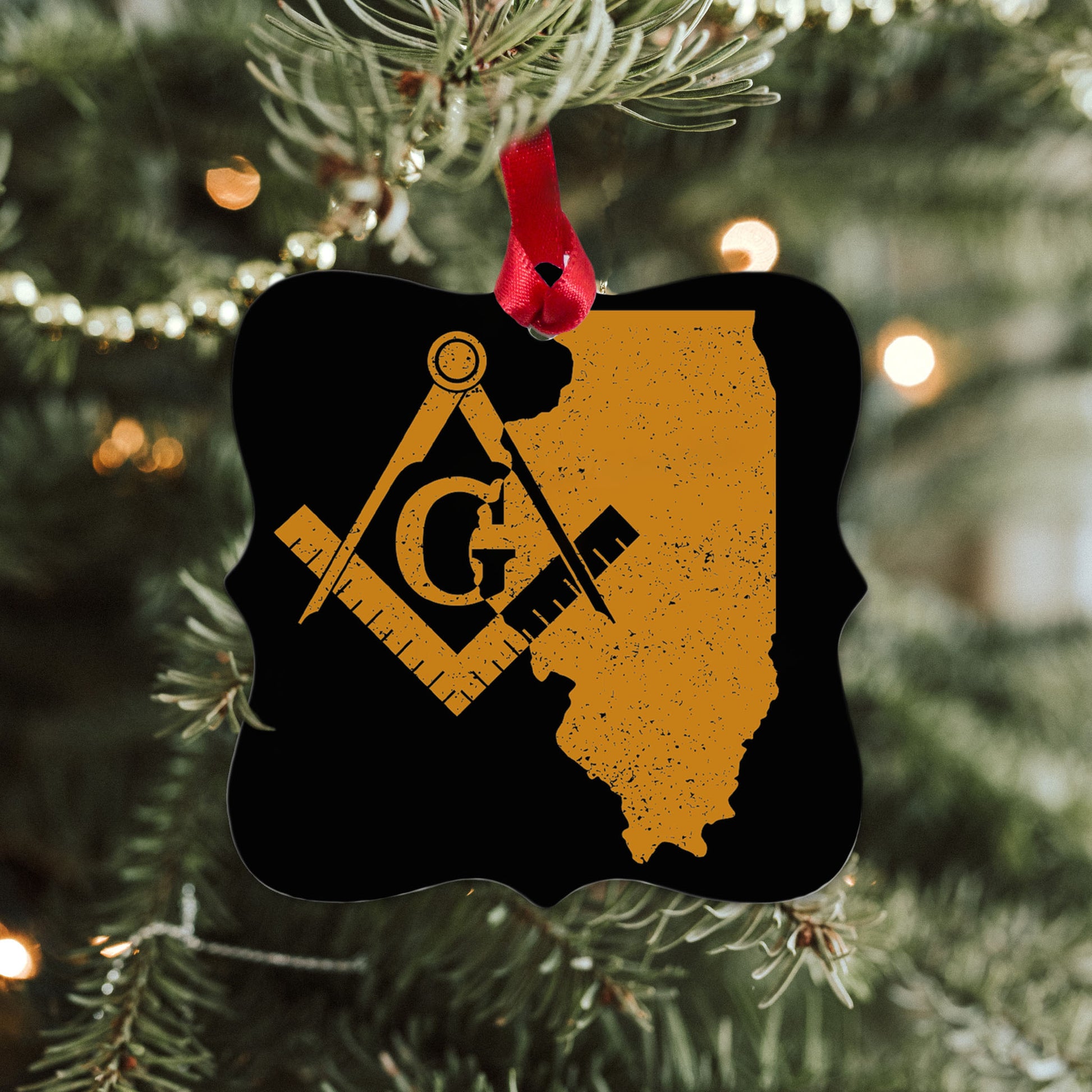 Illinois square & compass freemason symbol state map - Square Aluminum Ornament