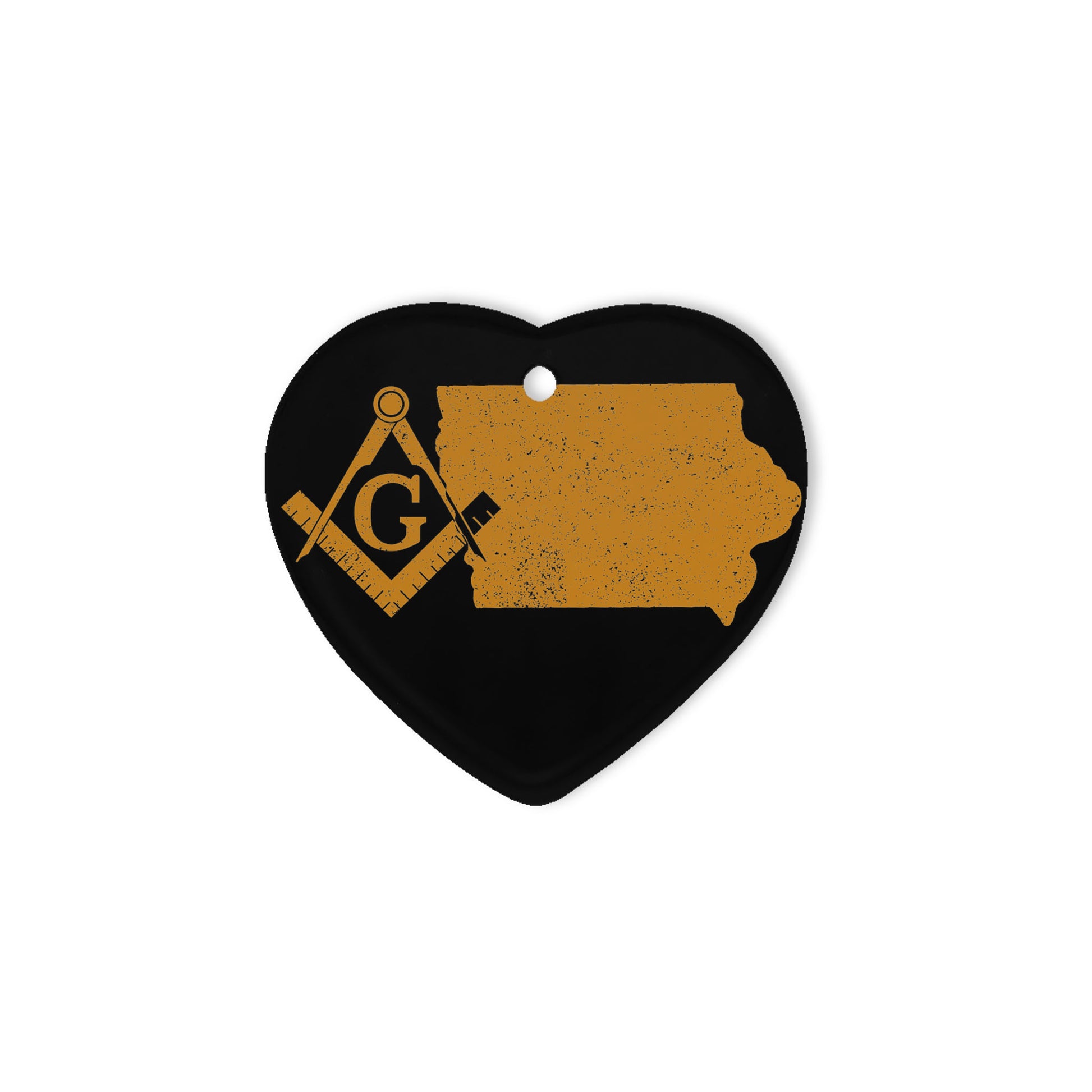 Iowa square & compass freemason symbol state map - Heart Ceramic Ornament (2 sided)