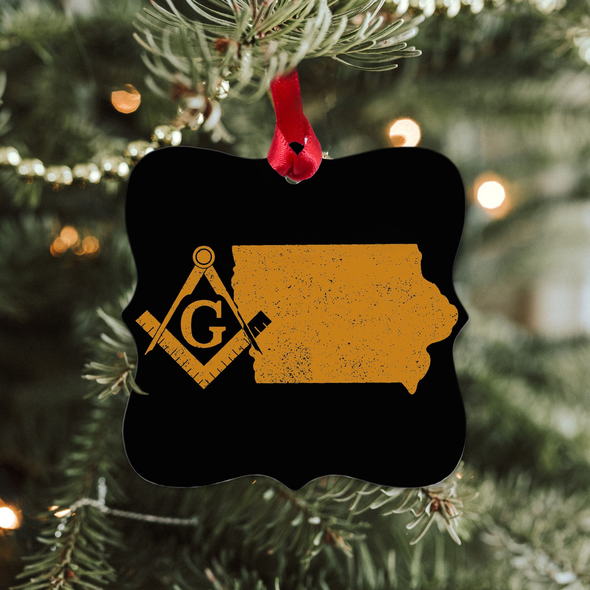 Iowa square & compass freemason symbol state map - Square Aluminum Ornament