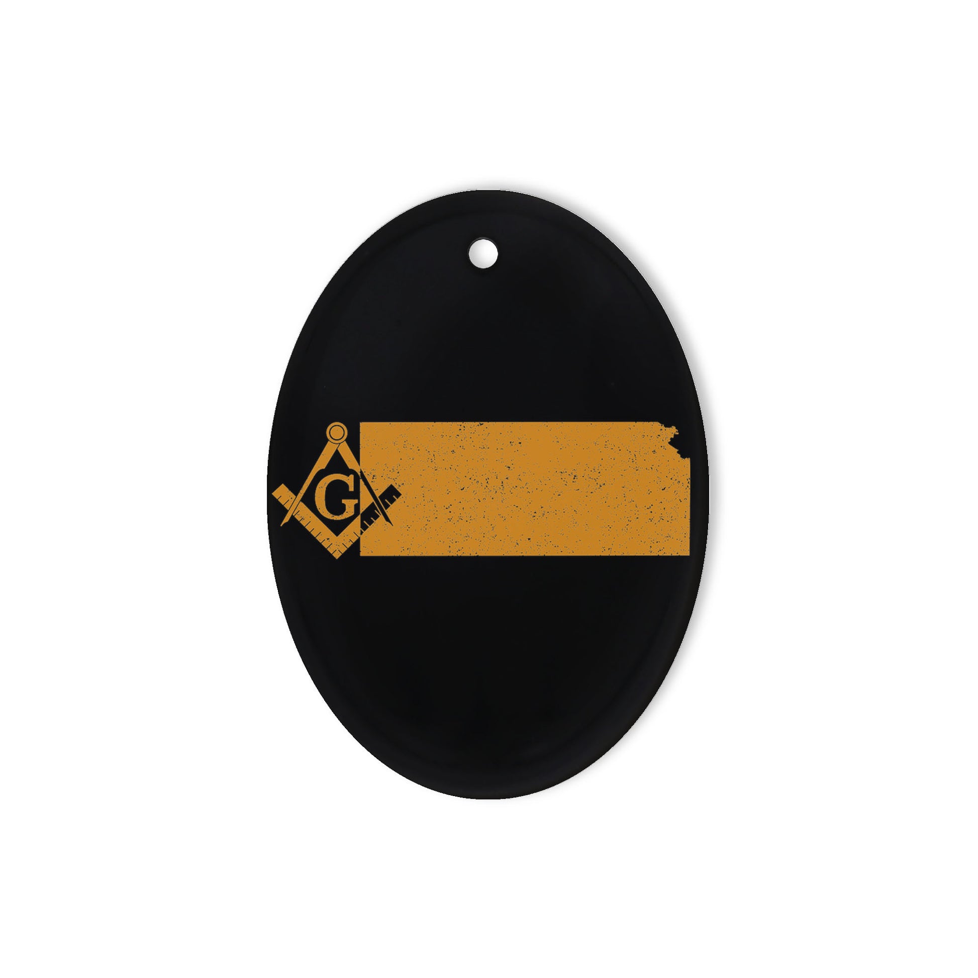 Kansas square & compass freemason symbol state map - Oval Ceramic Ornament