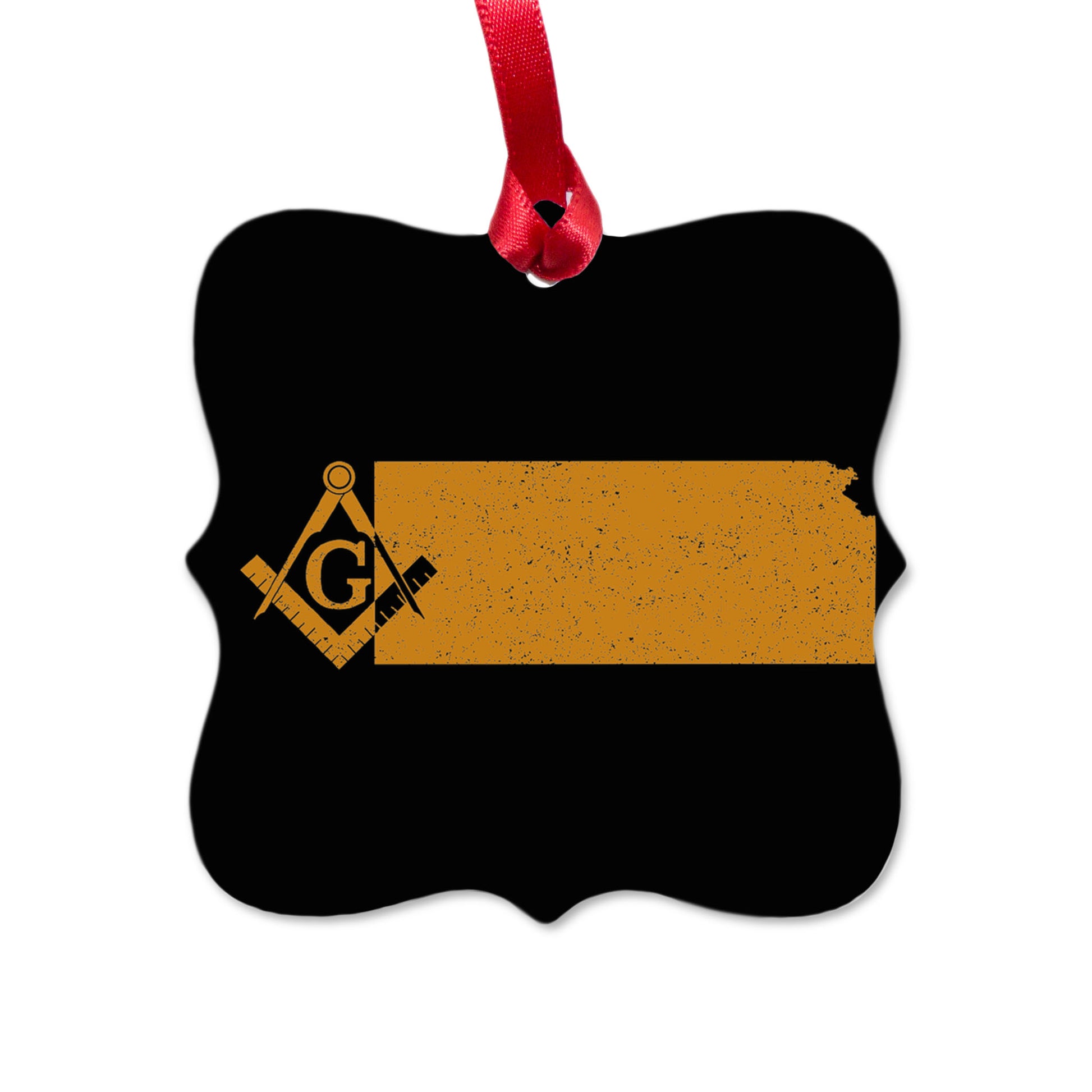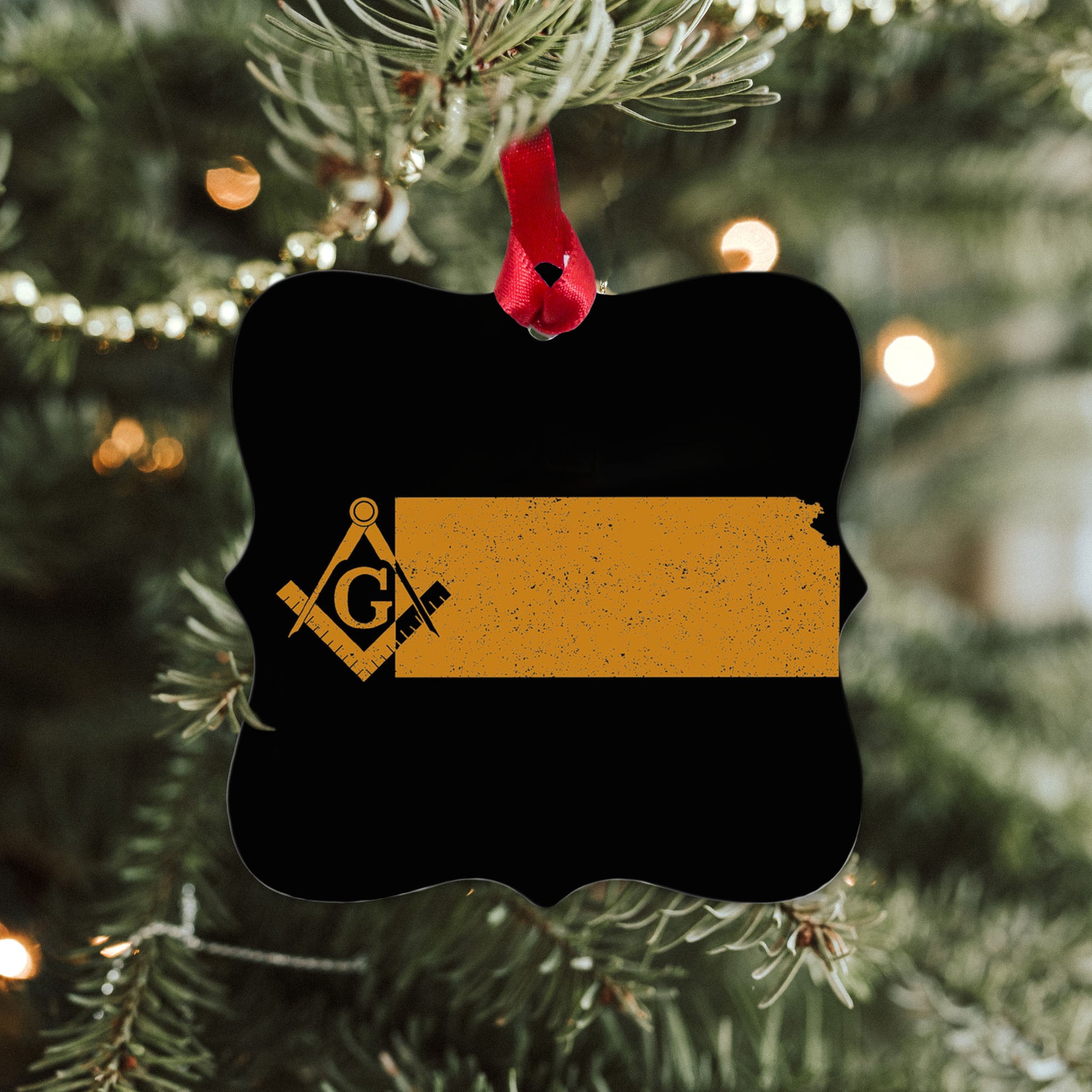 Kansas square & compass freemason symbol state map - Square Aluminum Ornament