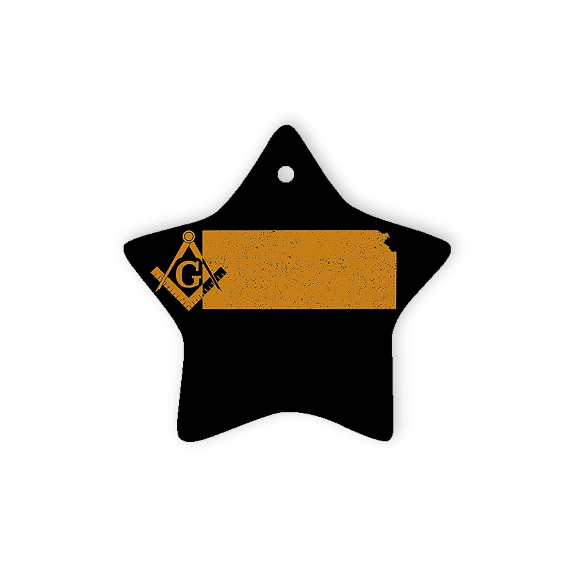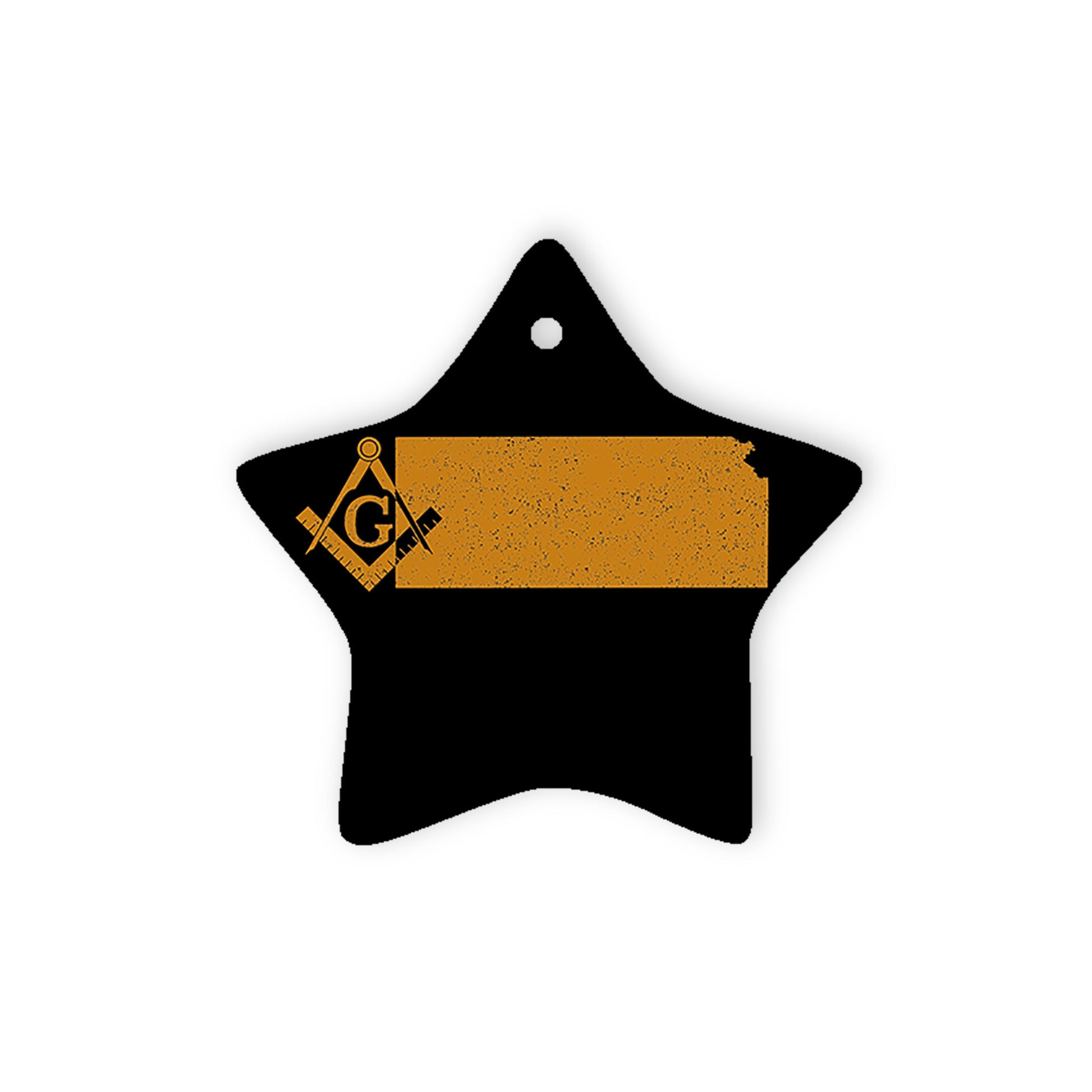 Kansas square & compass freemason symbol state map - Star Ceramic Ornament (2 sided)