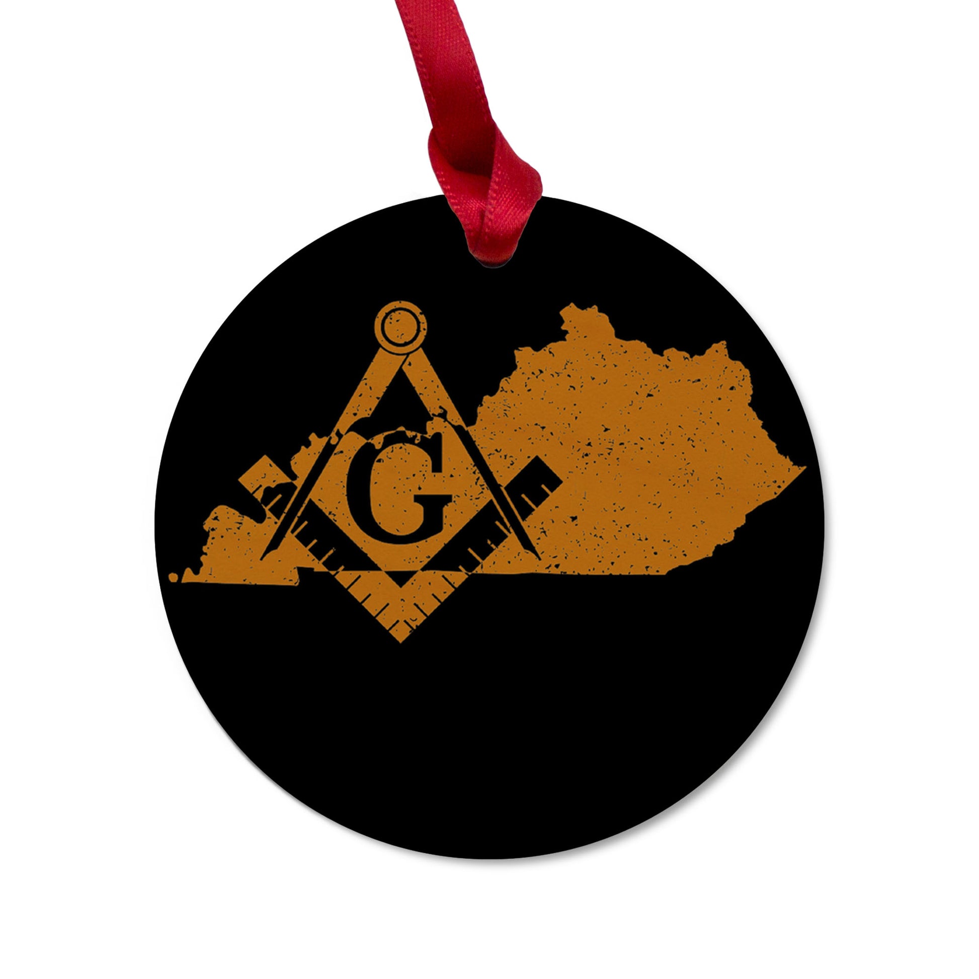 Kentucky square & compass freemason symbol state map - Round Wooden Maple Ornament