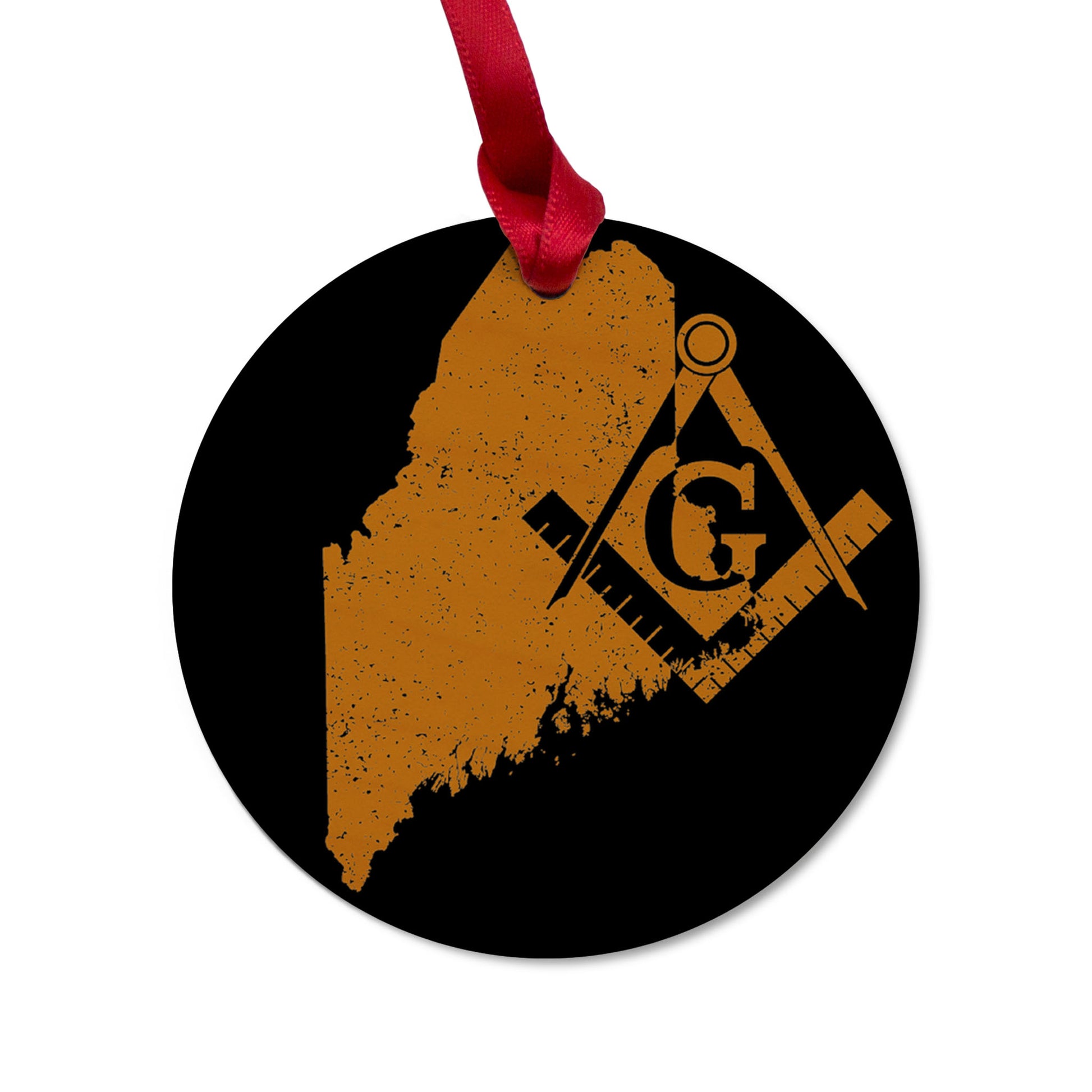 Maine square & compass freemason symbol state map - Round Wooden Maple Ornament