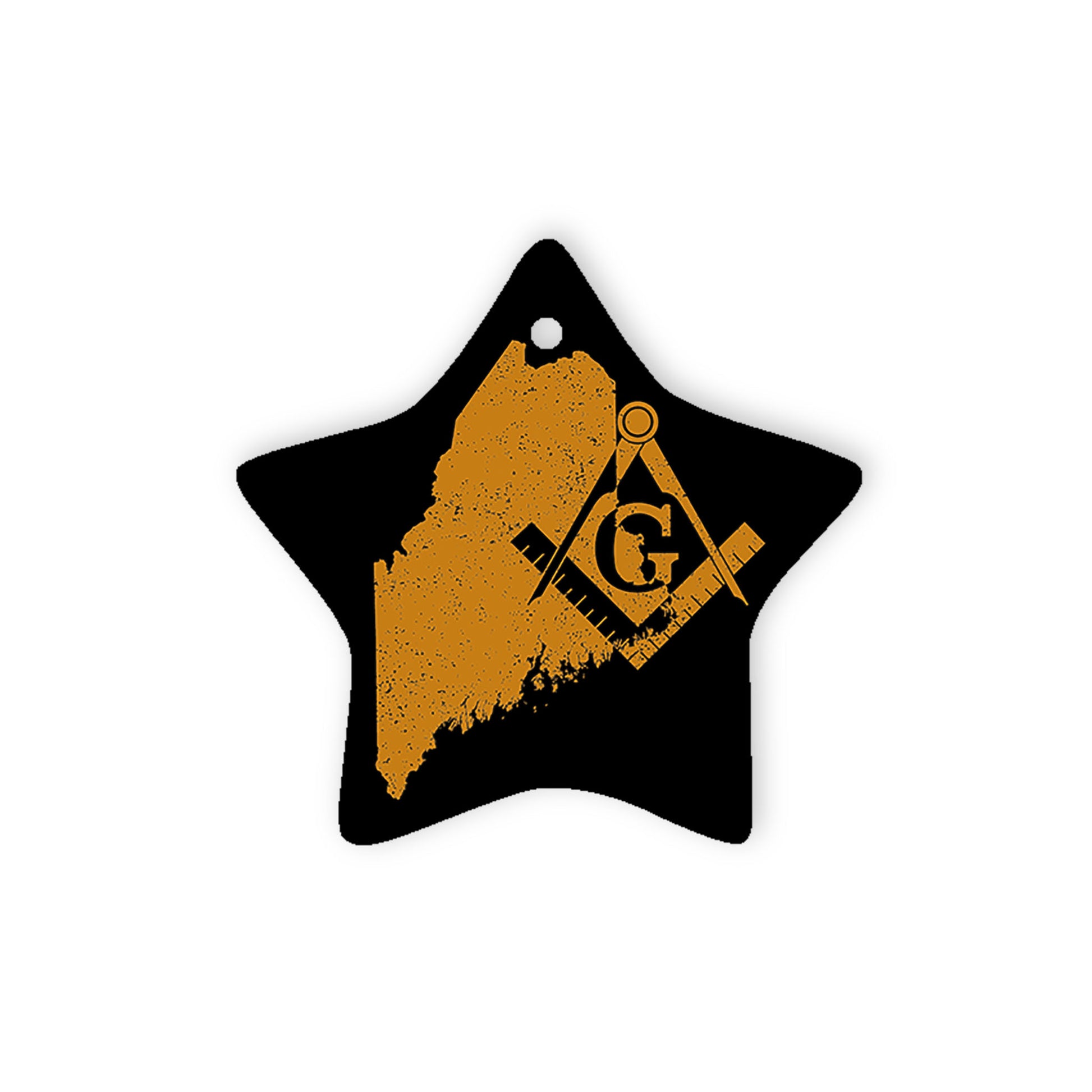 Maine square & compass freemason symbol state map - Star Ceramic Ornament (2 sided)