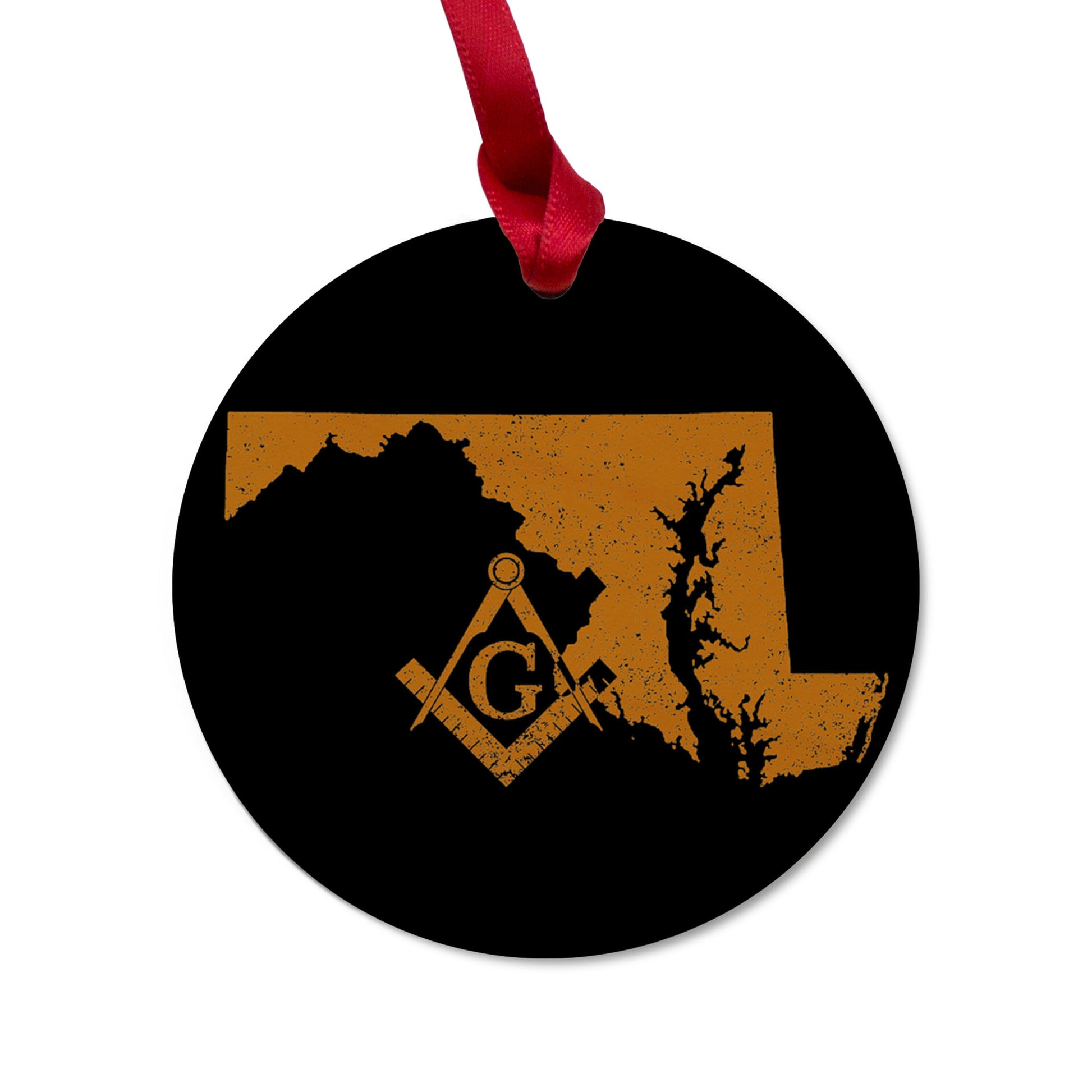 Maryland square & compass freemason symbol state map - Round Wooden Maple Ornament
