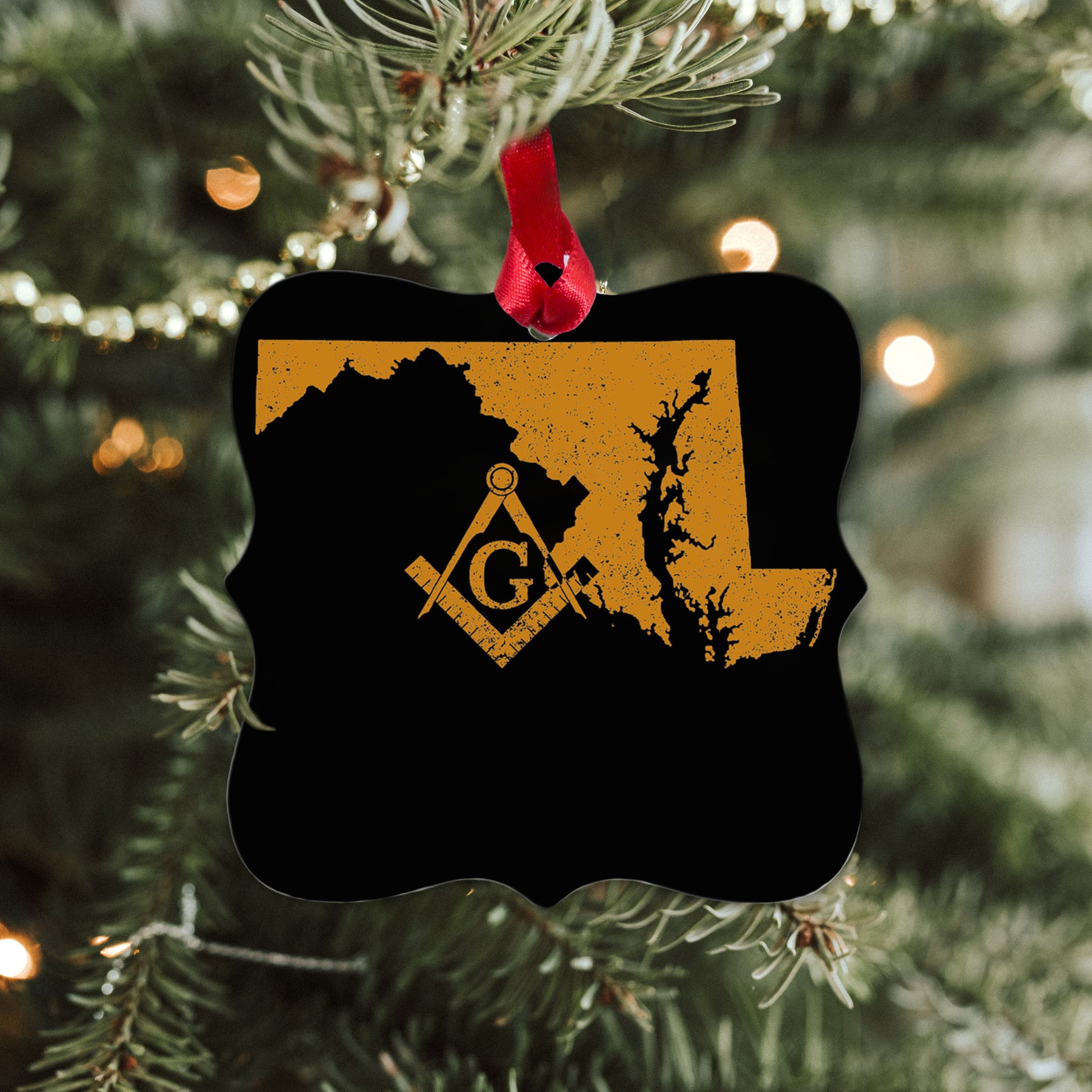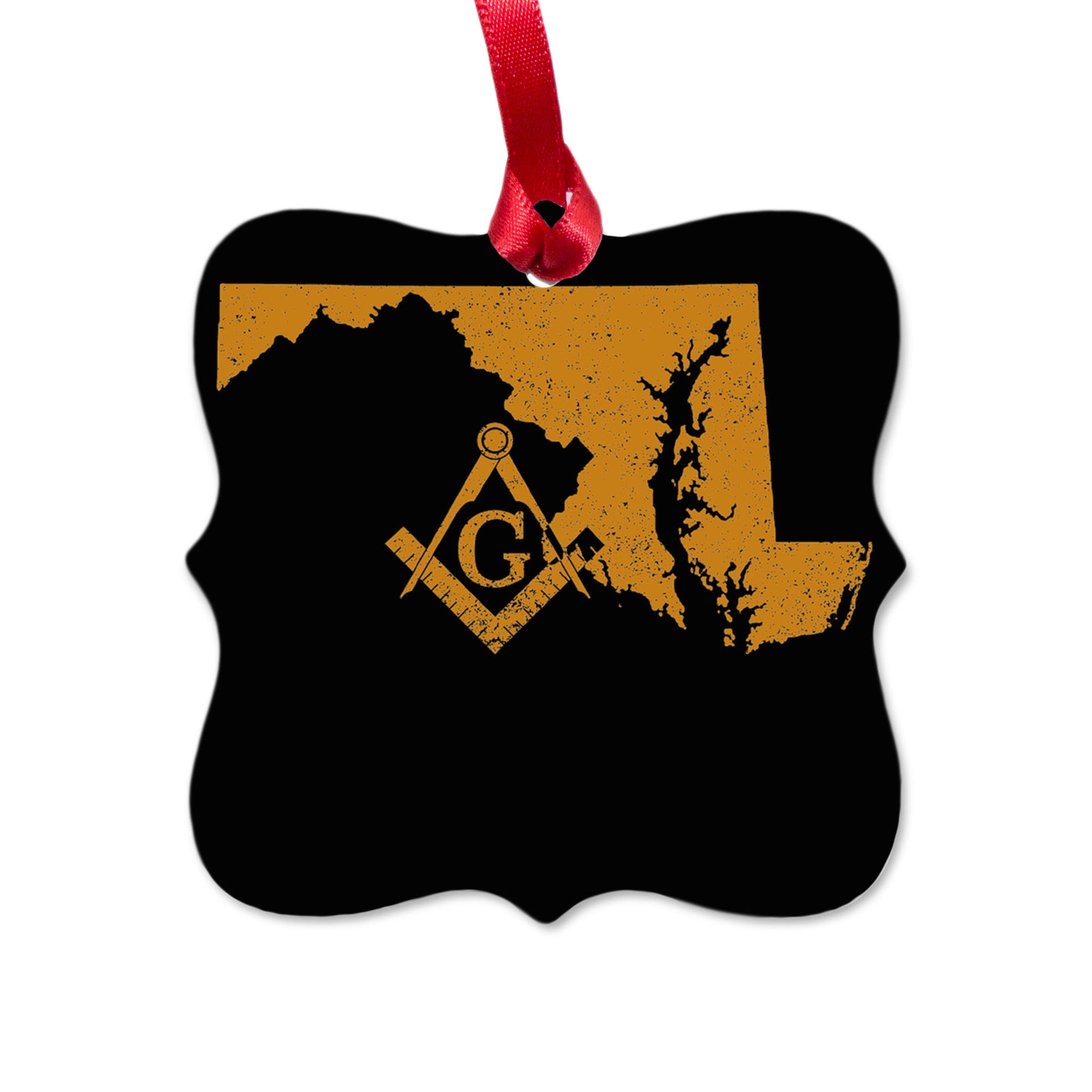 Maryland square & compass freemason symbol state map - Square Aluminum Ornament
