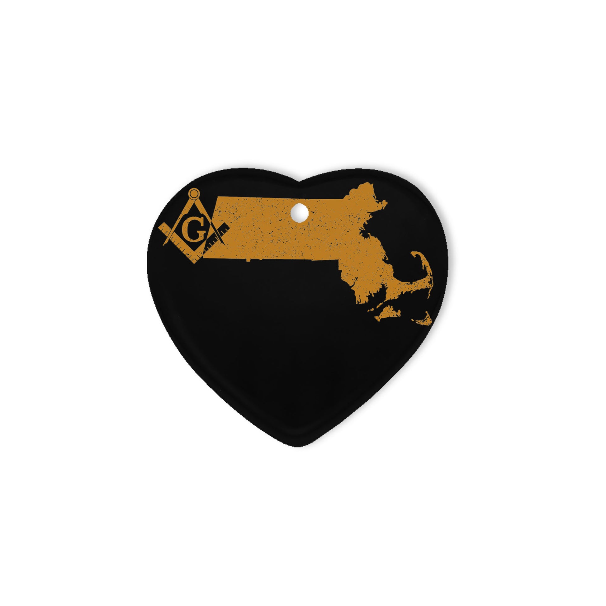 Massachusetts square & compass freemason symbol state map - Heart Ceramic Ornament (2 sided)