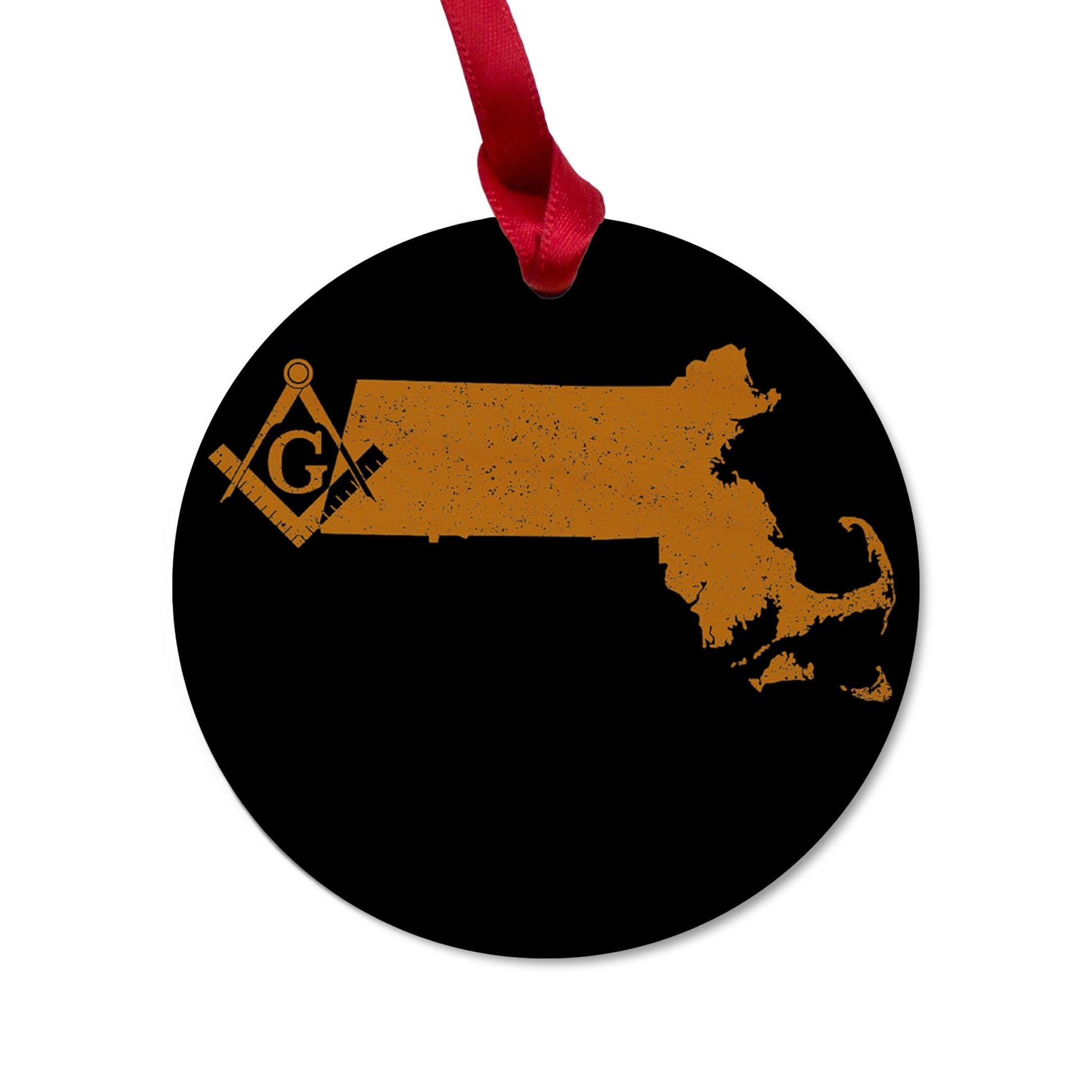 Massachusetts square & compass freemason symbol state map - Round Wooden Maple Ornament
