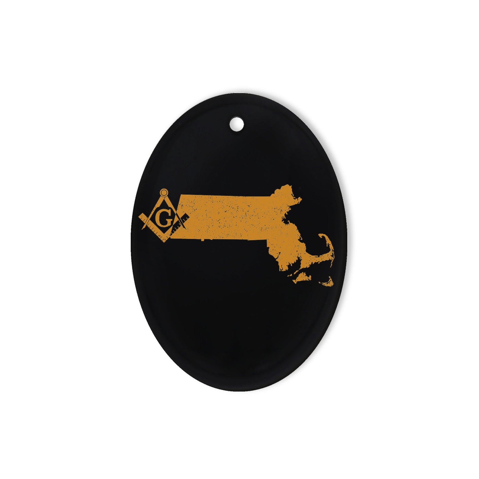 Massachusetts square & compass freemason symbol state map - Oval Ceramic Ornament