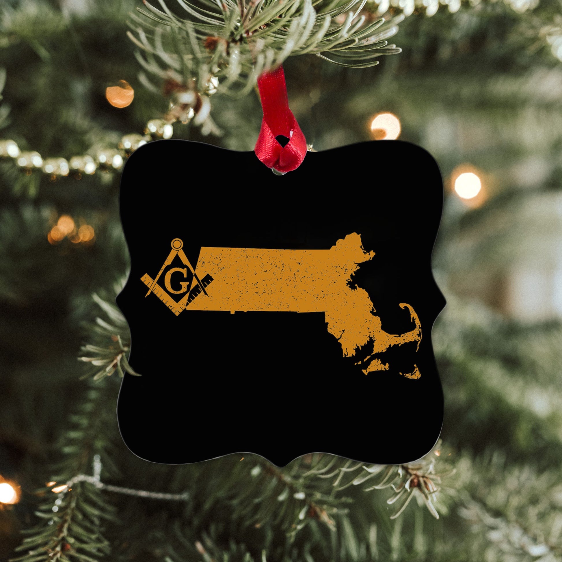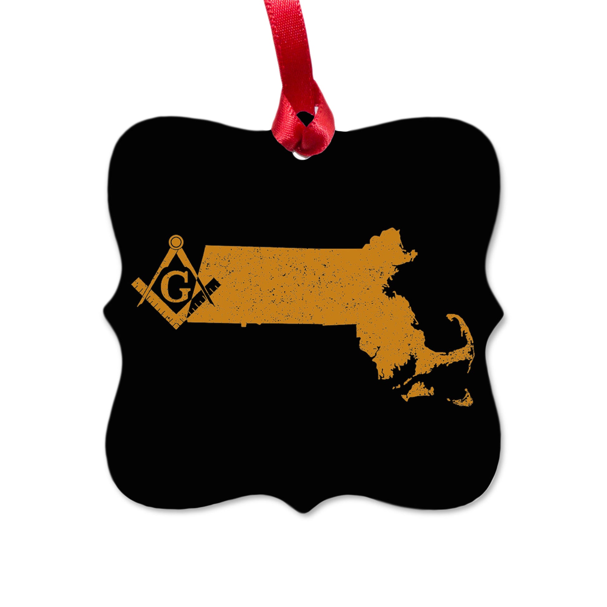 Massachusetts square & compass freemason symbol state map - Square Aluminum Ornament