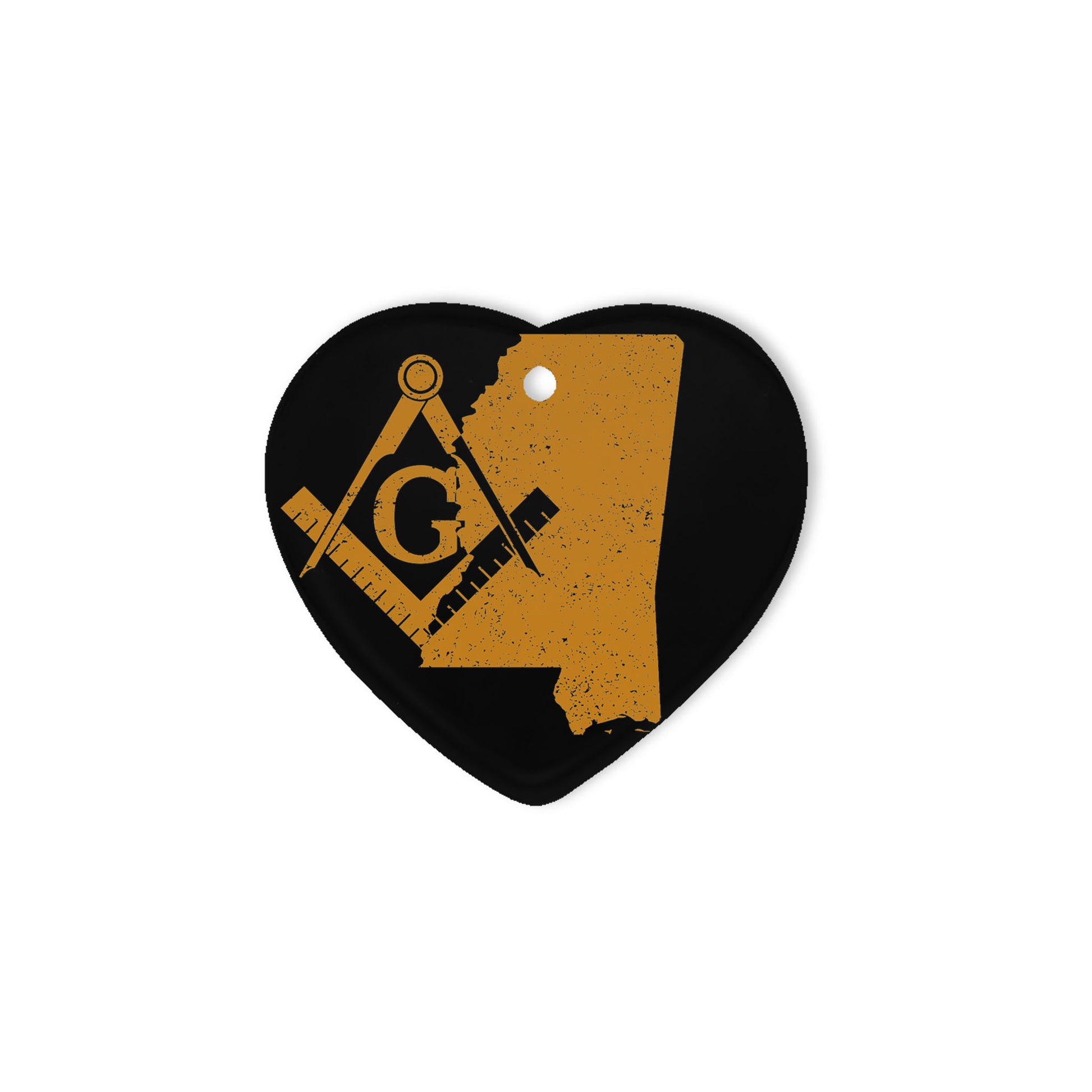 Mississippi square & compass freemason symbol state map - Heart Ceramic Ornament (2 sided)