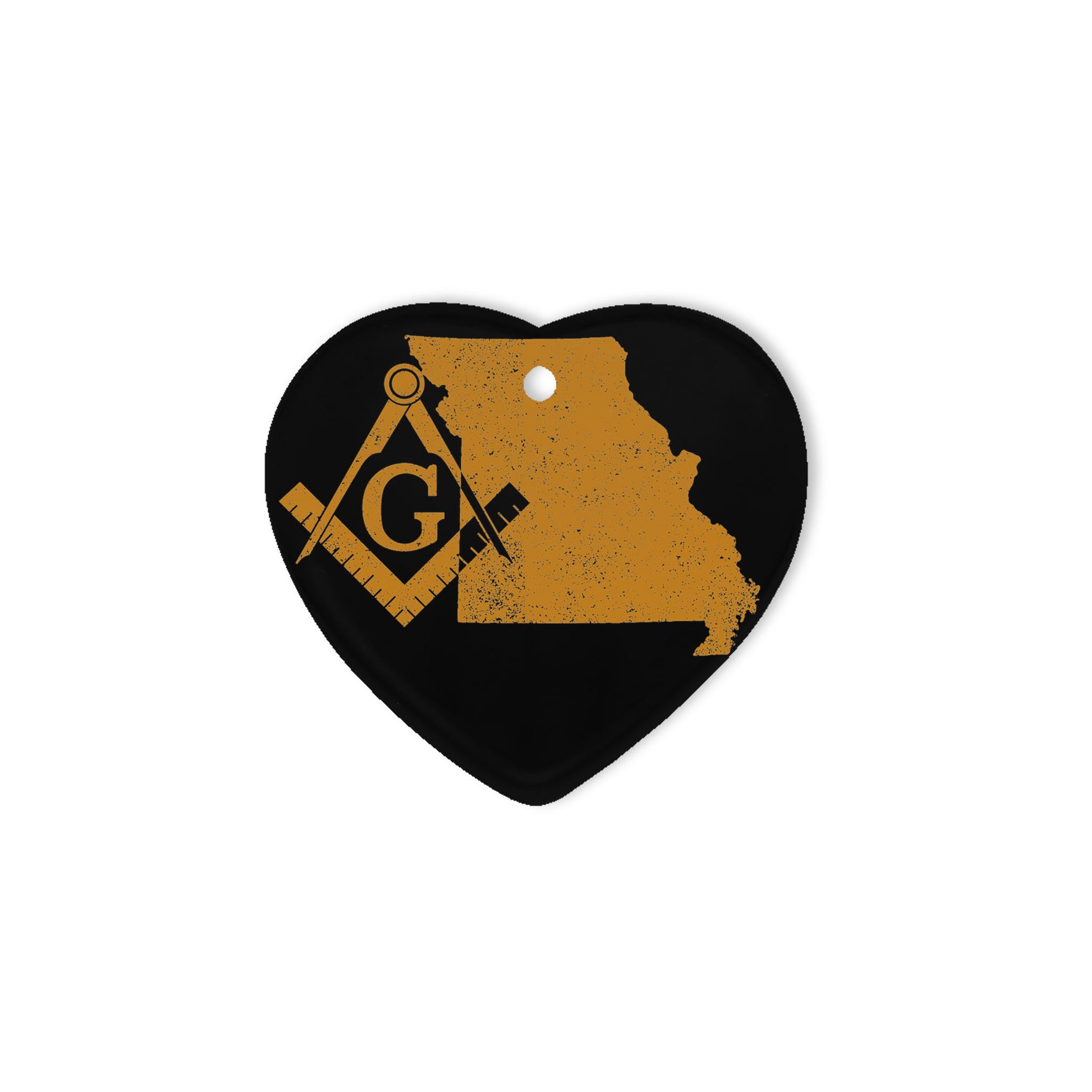 Missouri square & compass freemason symbol state map - Heart Ceramic Ornament (2 sided)