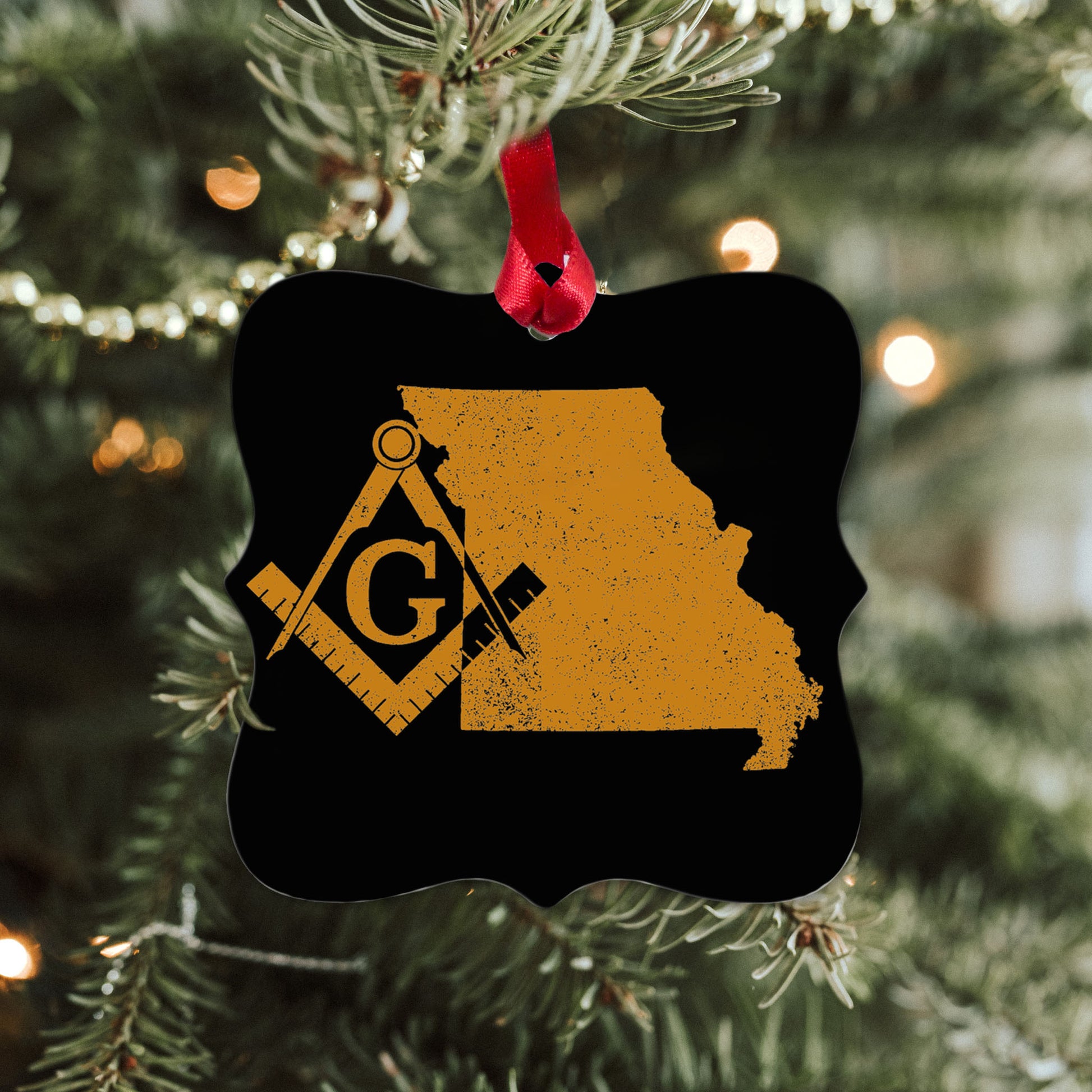Missouri square & compass freemason symbol state map - Square Aluminum Ornament