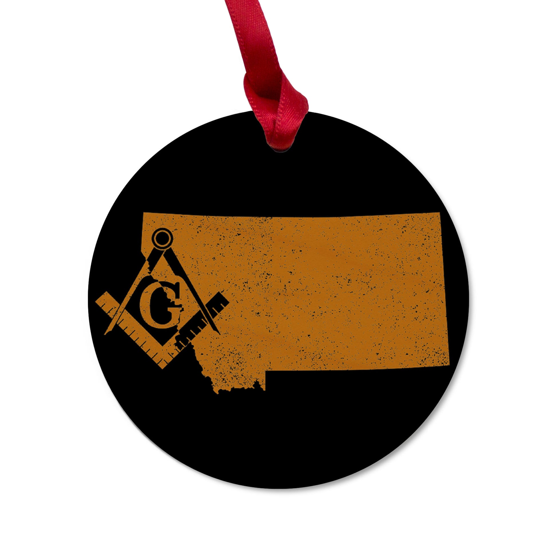 Montana square & compass freemason symbol state map - Round Wooden Maple Ornament