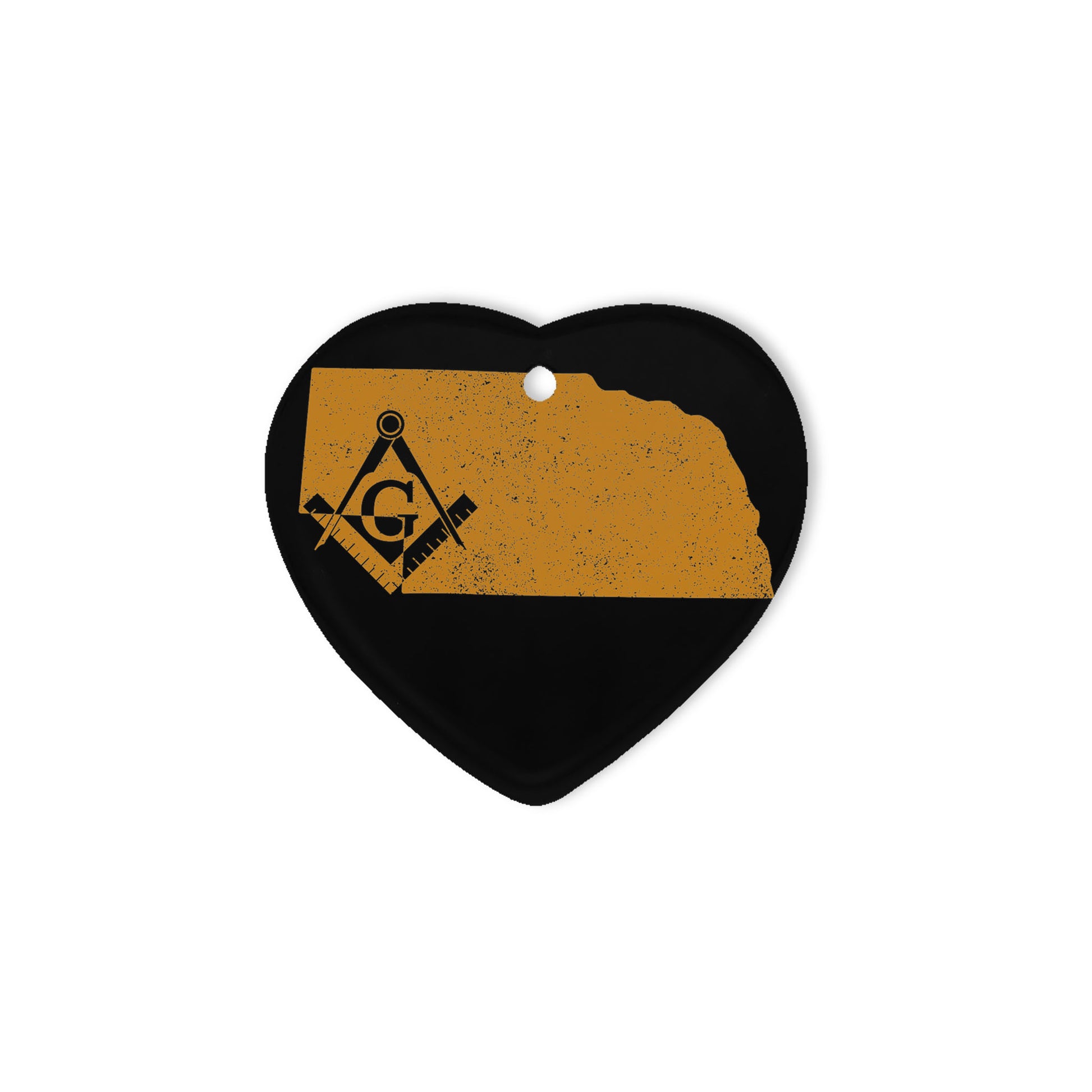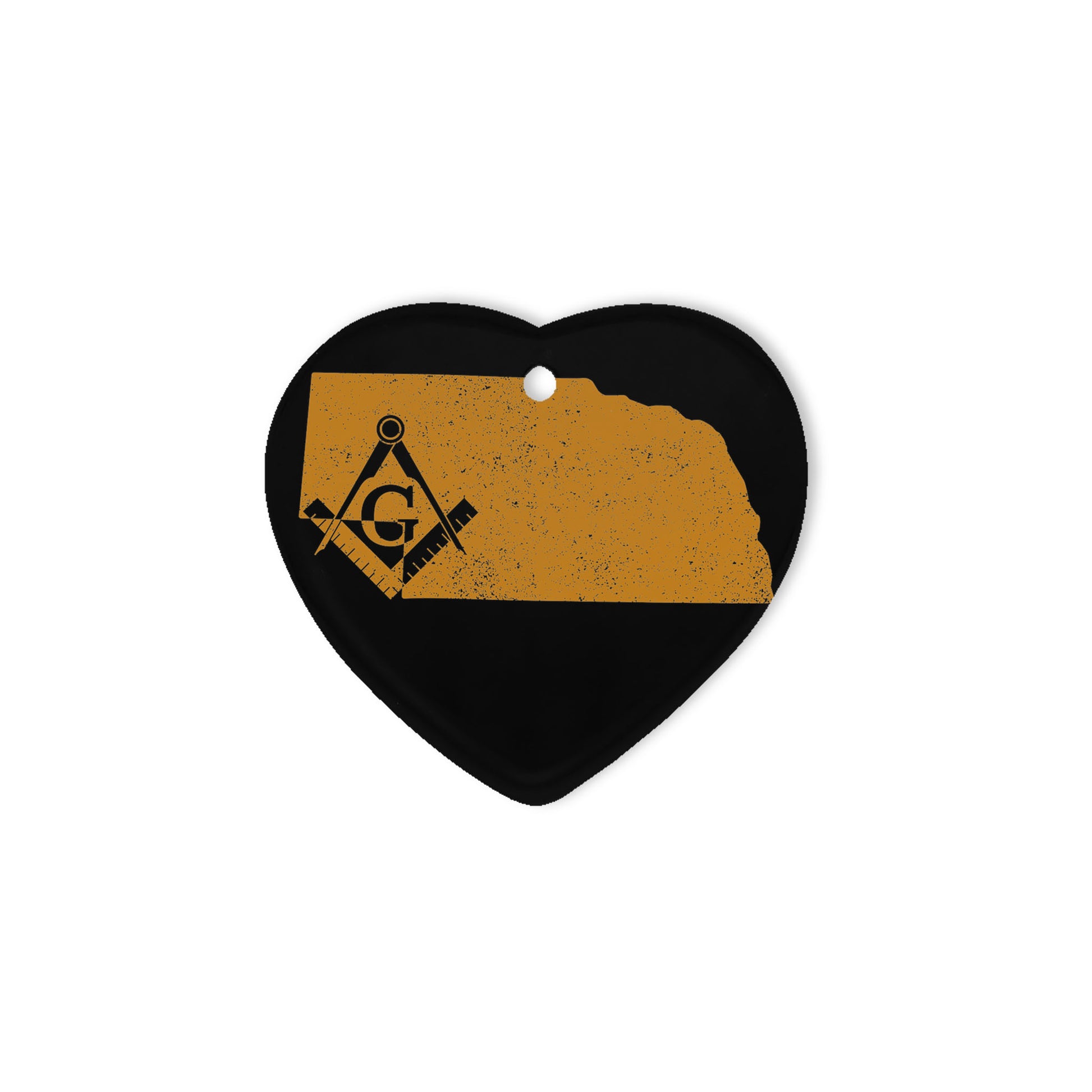 Nebraska square & compass freemason symbol state map - Heart Ceramic Ornament (2 sided)