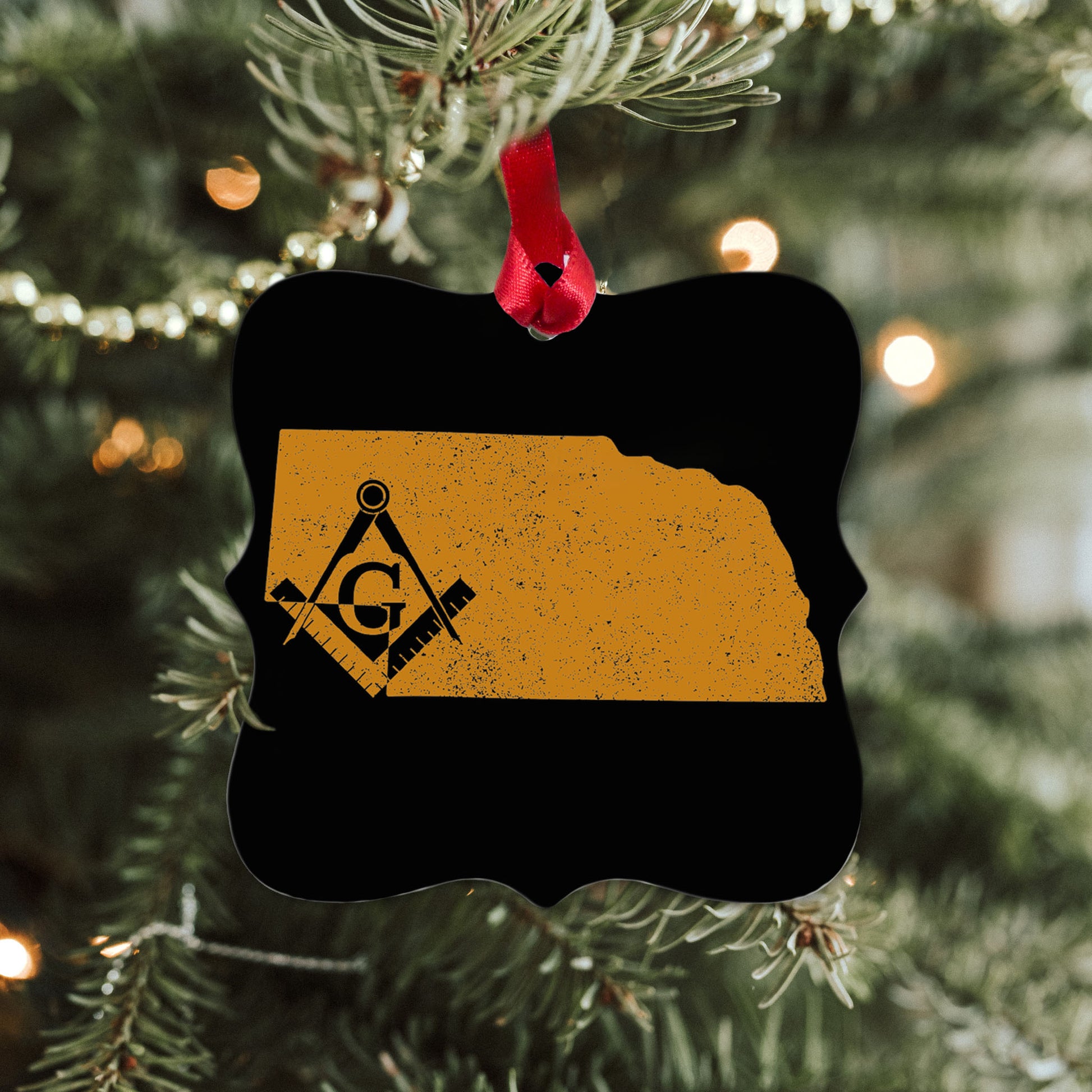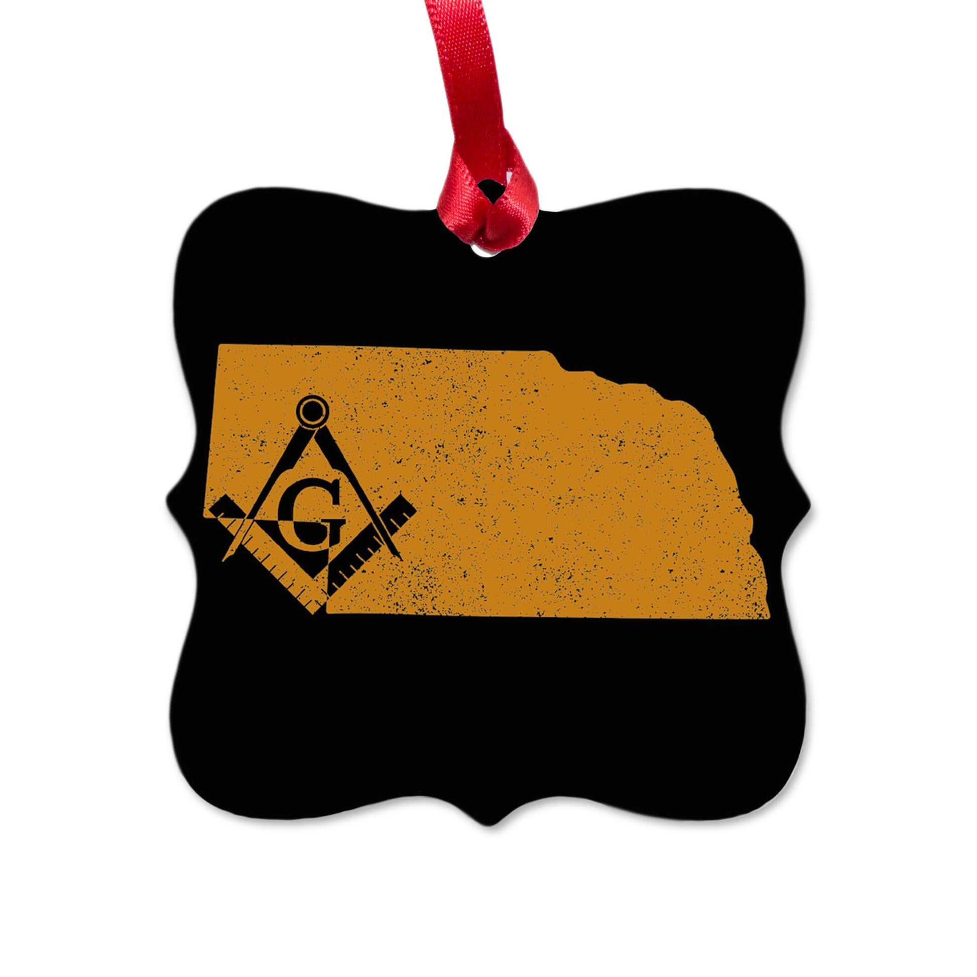 Nebraska square & compass freemason symbol state map - Square Aluminum Ornament