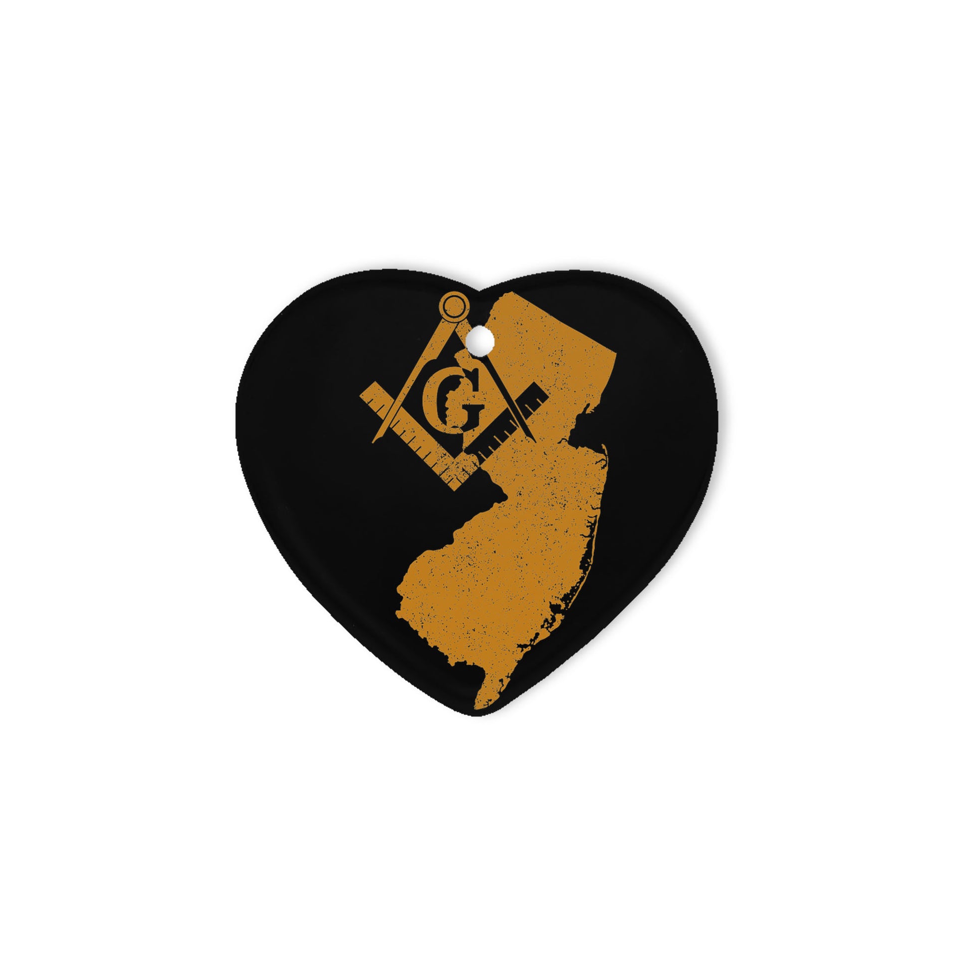 New Jersey square & compass freemason symbol state map - Heart Ceramic Ornament (2 sided)
