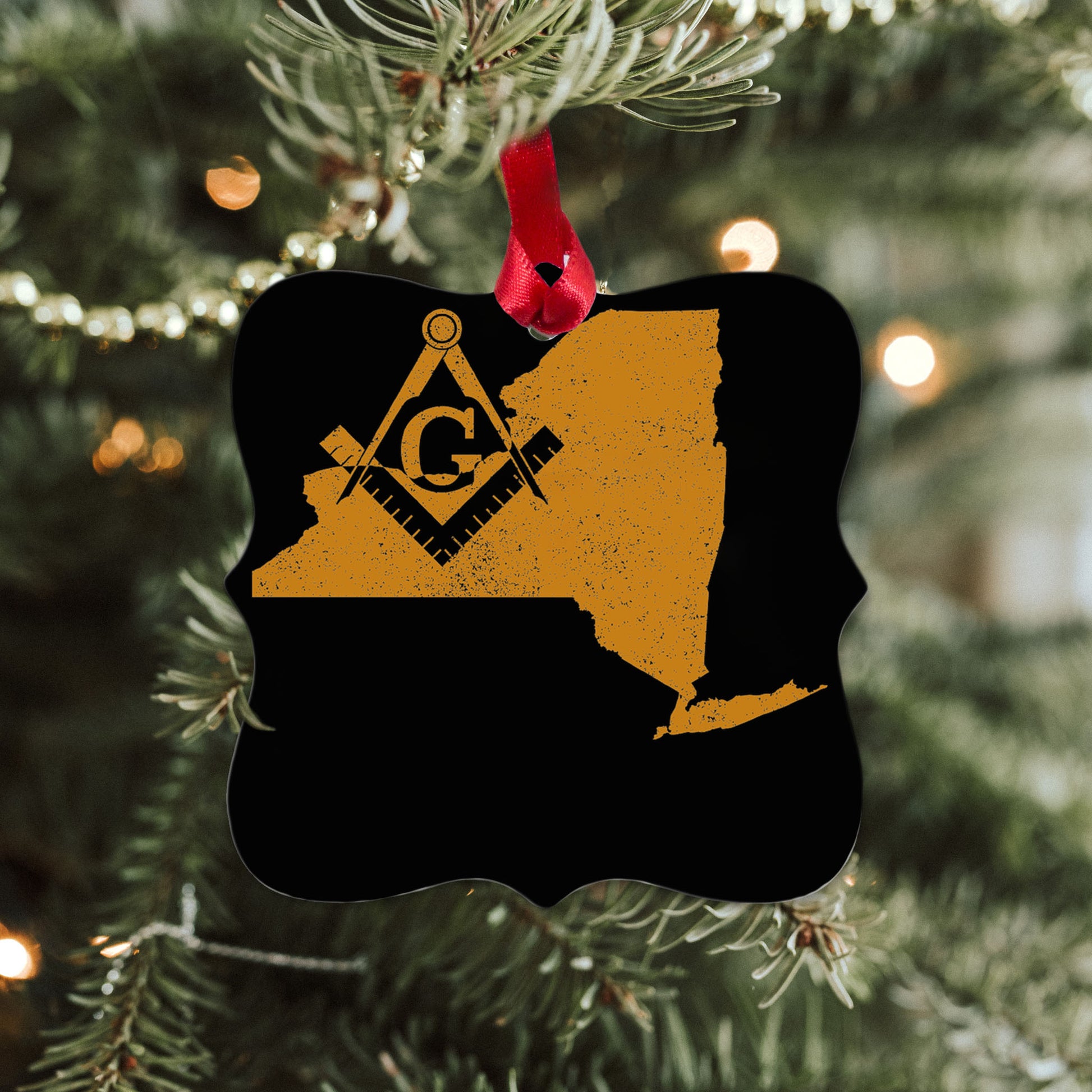 New York square & compass freemason symbol state map - Square Aluminum Ornament