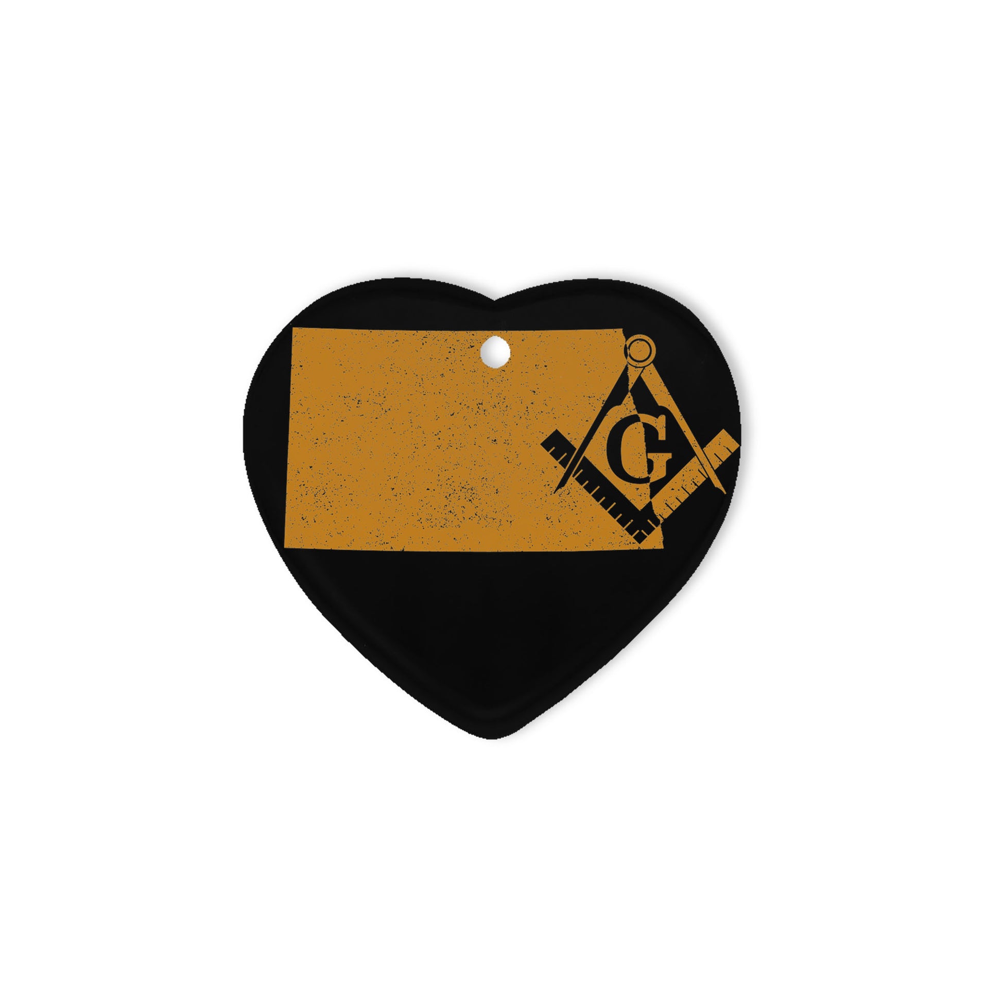 North Dakota square & compass freemason symbol state map - Heart Ceramic Ornament (2 sided)
