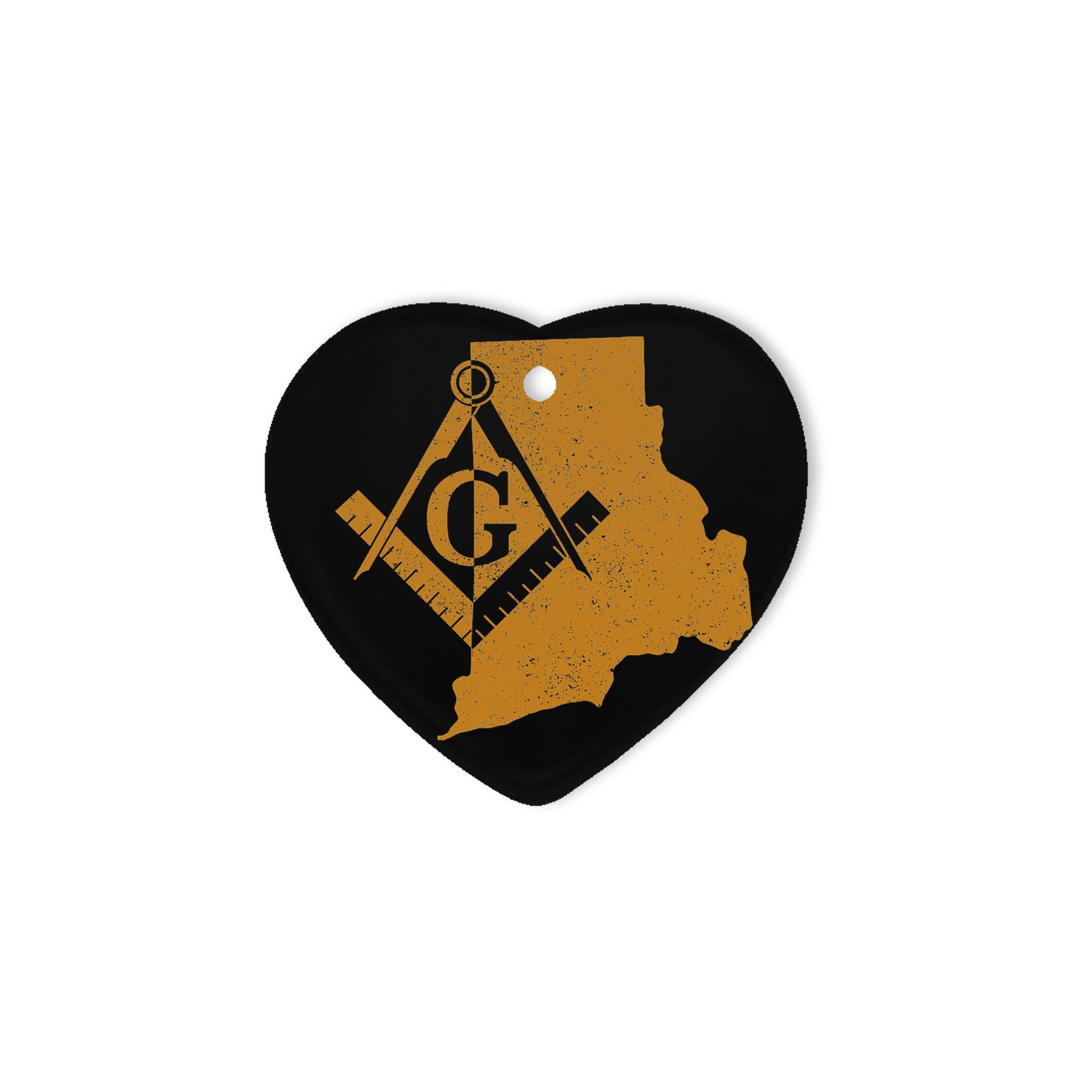 Rhode Island square & compass freemason symbol state map - Heart Ceramic Ornament