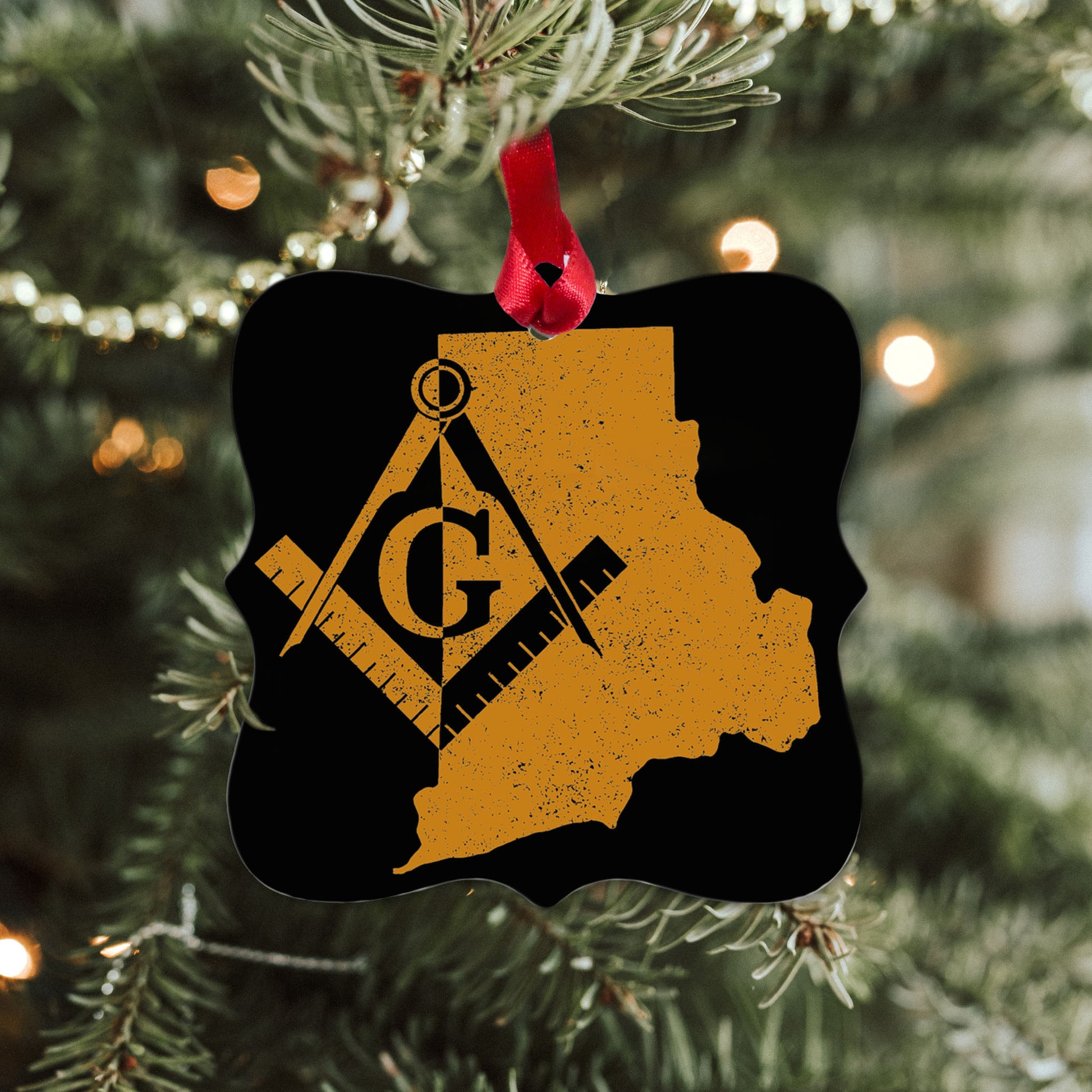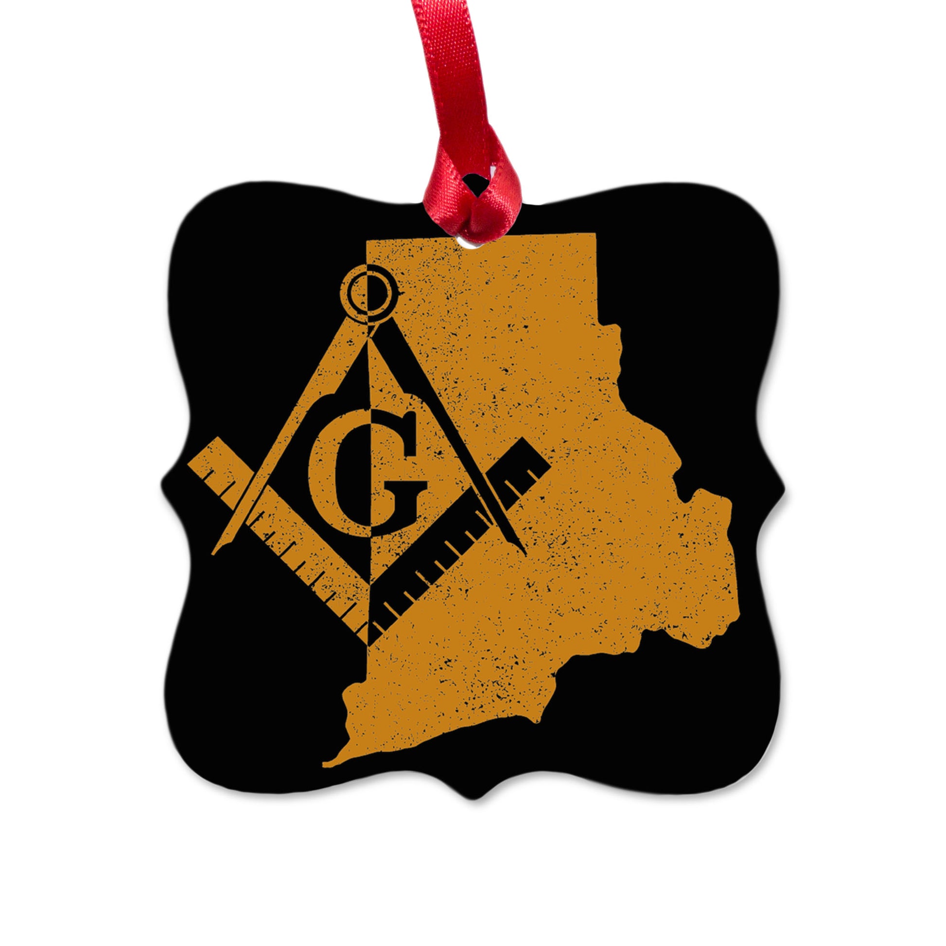 Rhode Island square & compass freemason symbol state map - Square Aluminum Ornament