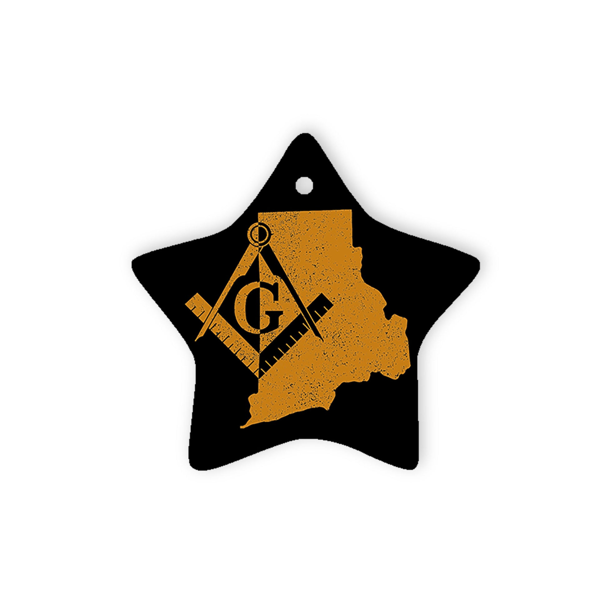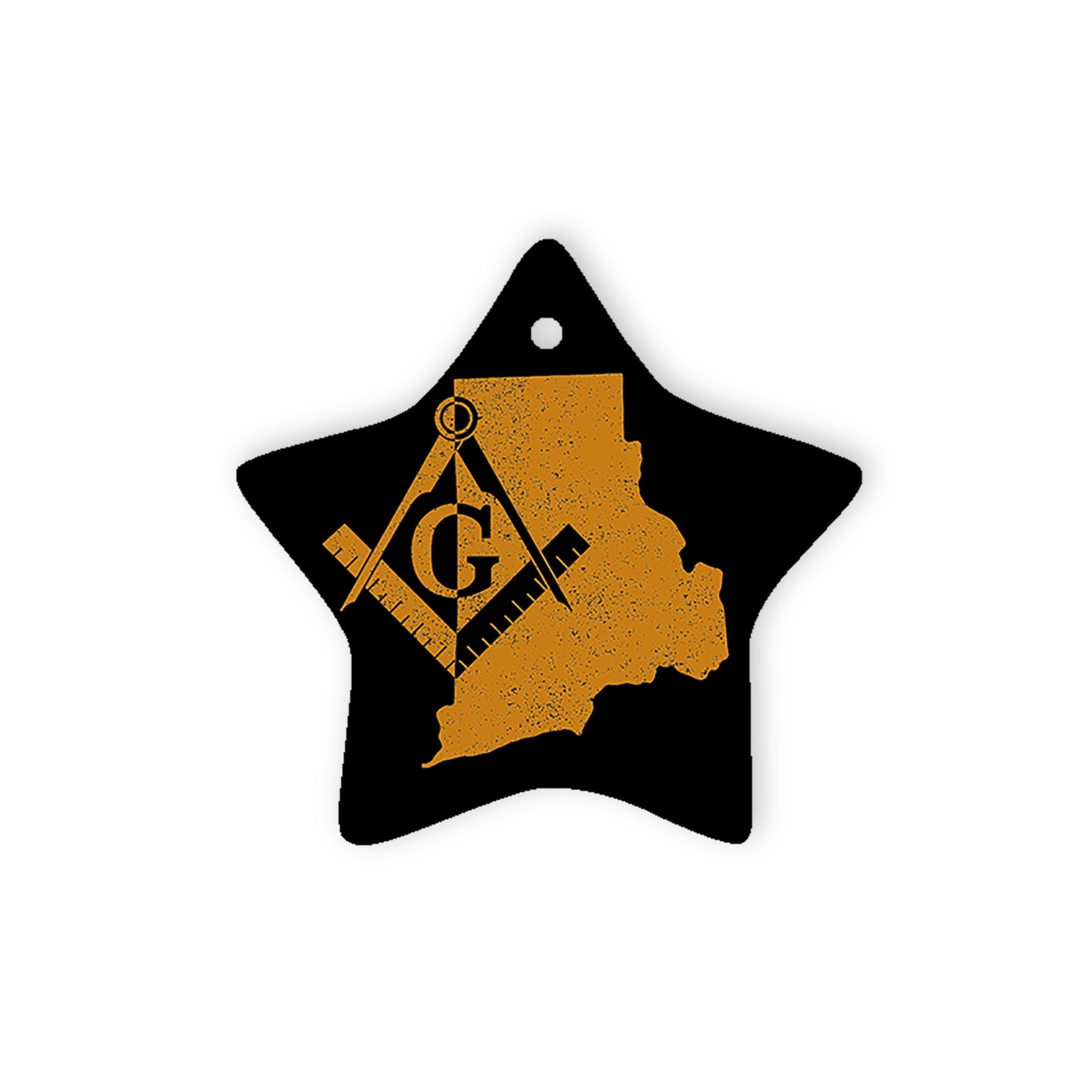 Rhode Island square & compass freemason symbol state map - Star Ceramic Ornament (2 sided)