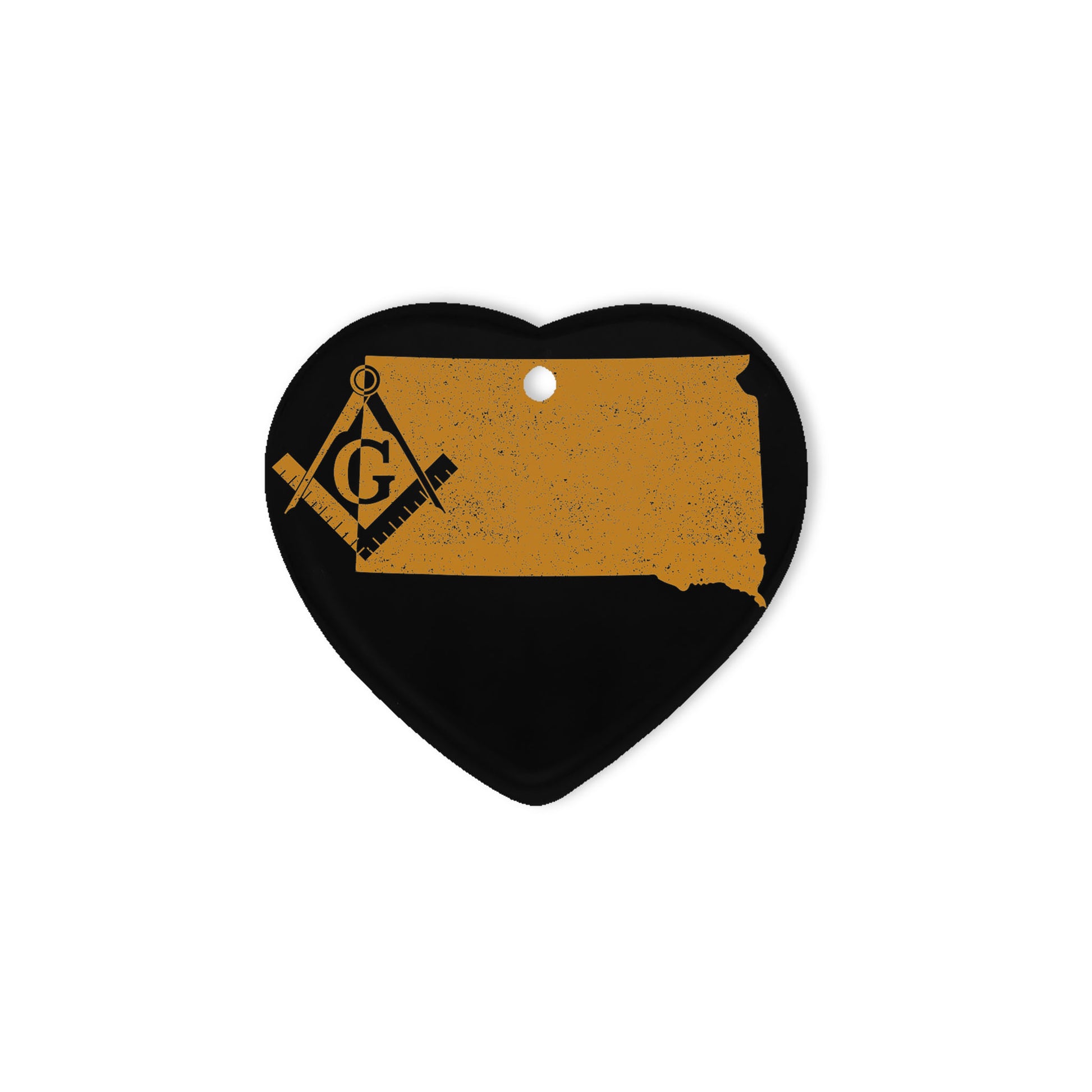 South Dakota square & compass freemason symbol state map - Heart Ceramic Ornament
