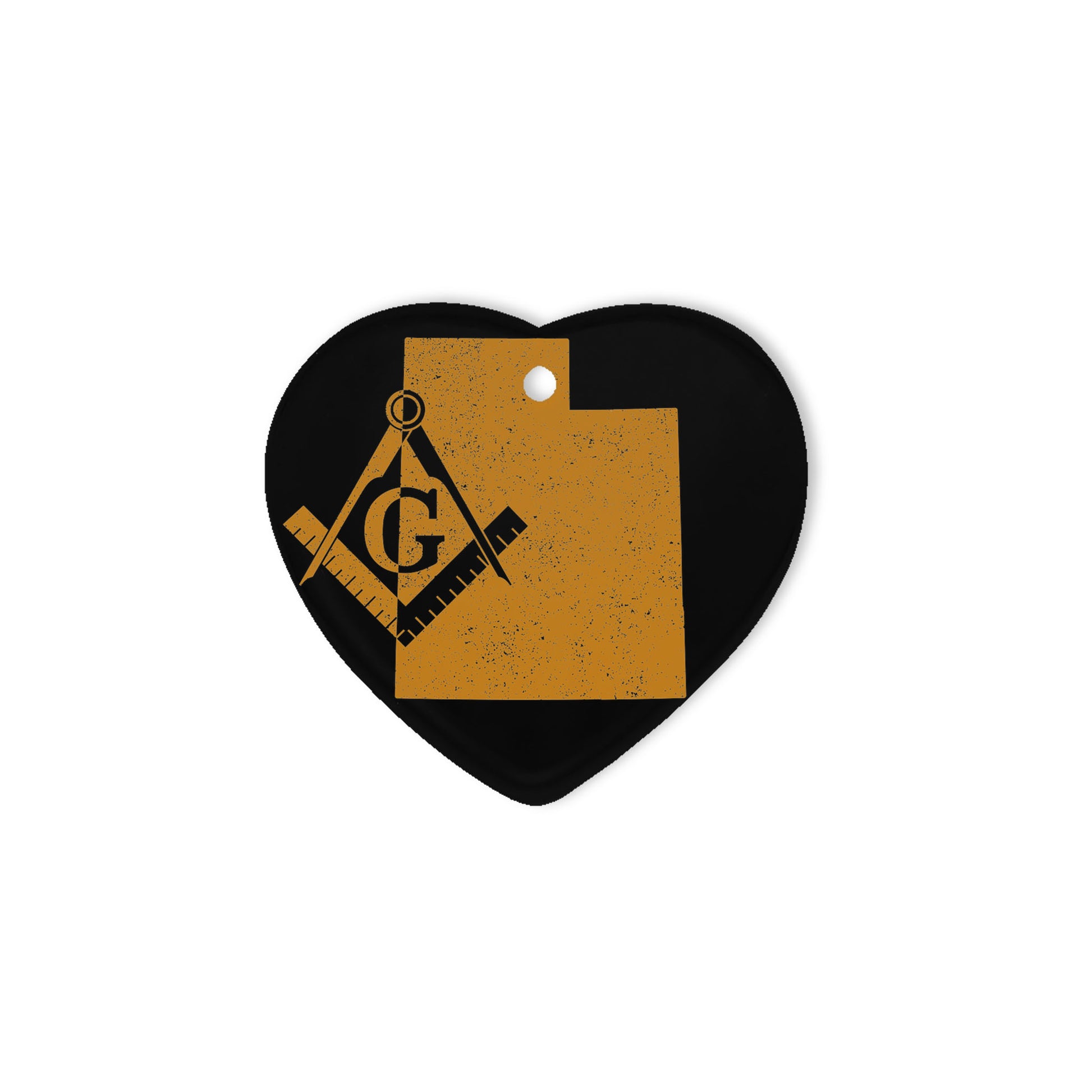 Utah square & compass freemason symbol state map - Heart Ceramic Ornament (2 sided)
