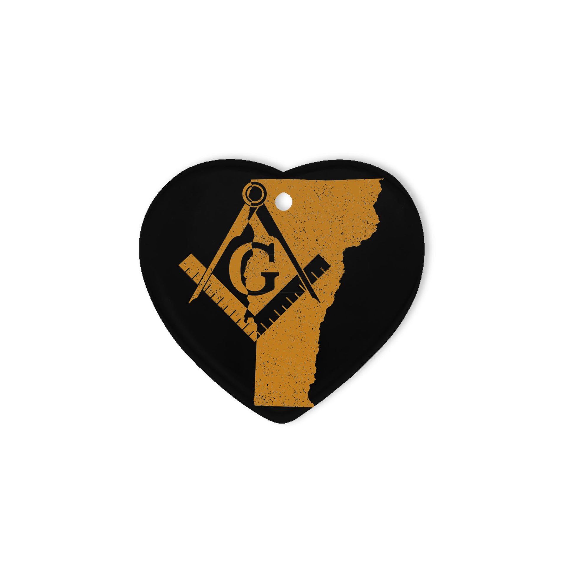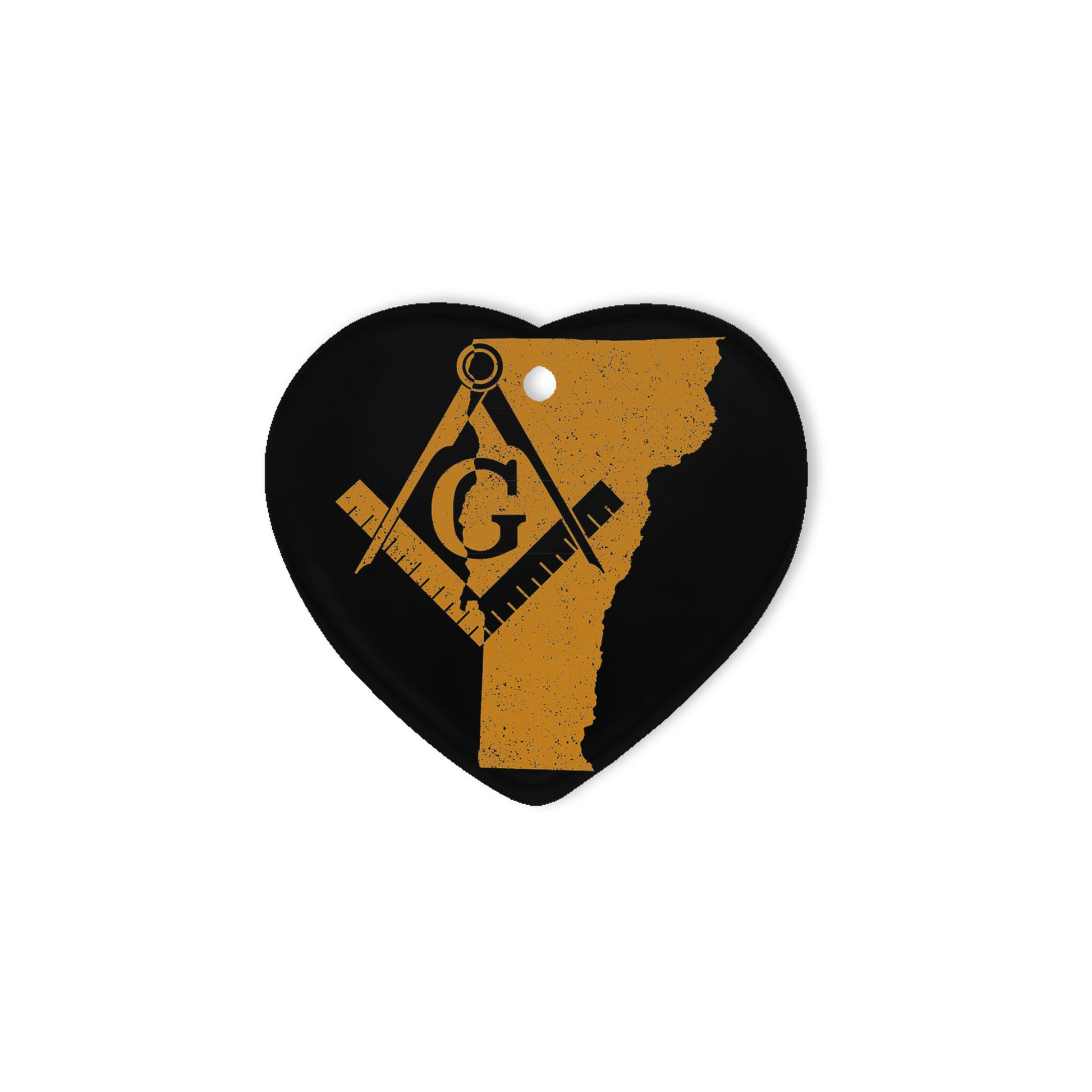 Vermont square & compass freemason symbol state map - Heart Ceramic Ornament (2 sided)
