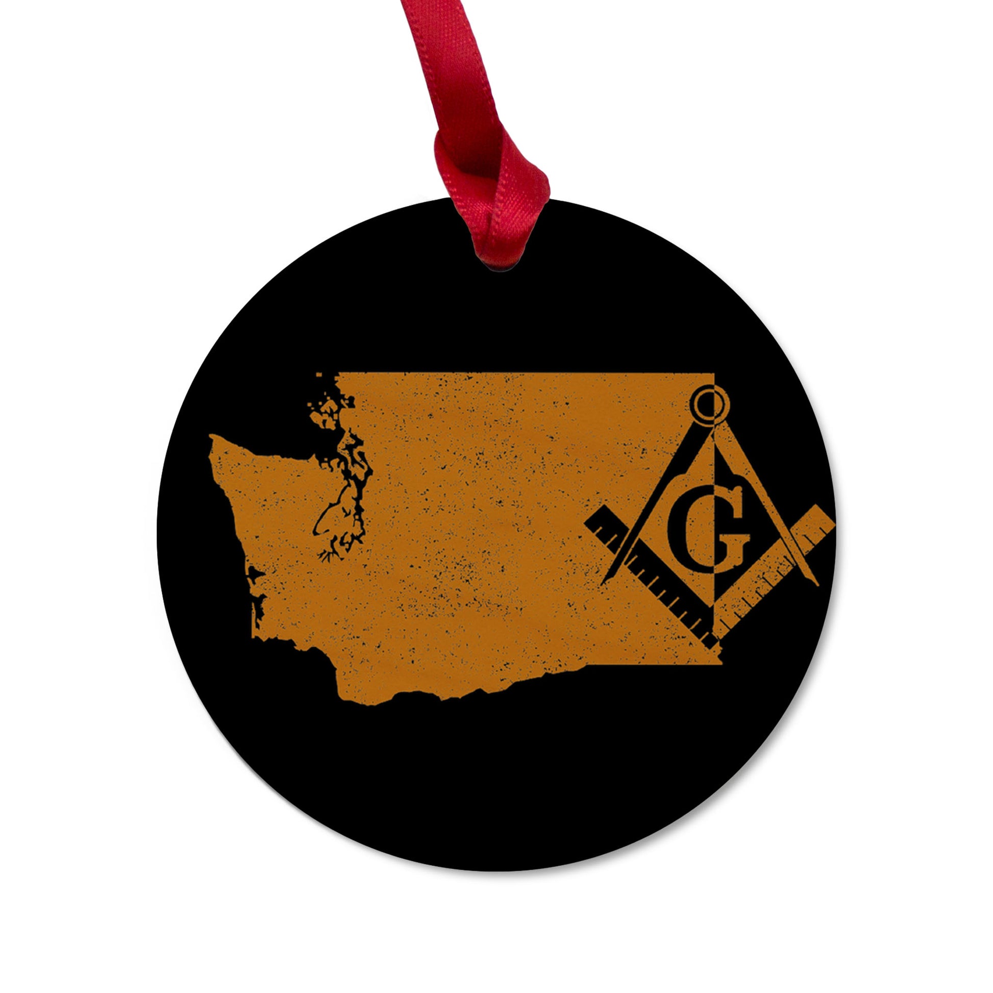 Washington square & compass freemason symbol state map - Round Wooden Maple Ornament