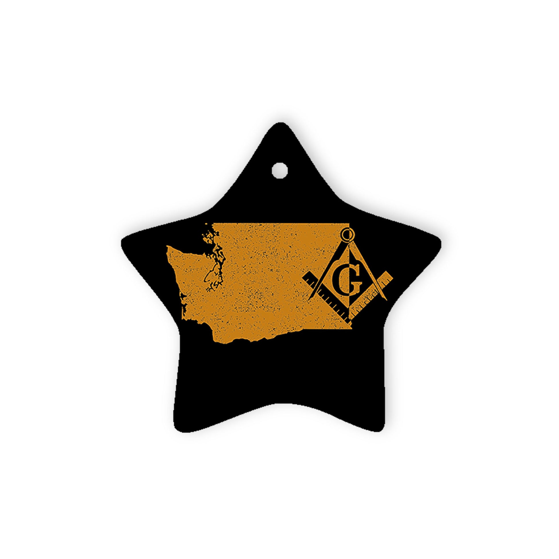 Washington square & compass freemason symbol state map - Star Ceramic Ornament (2 sided)